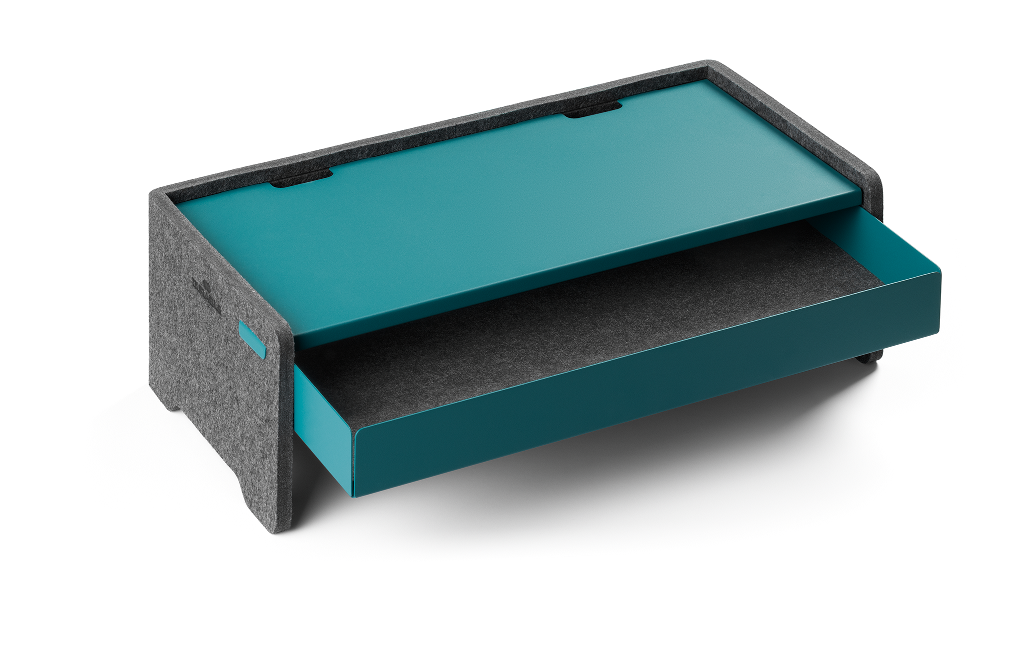 En monitor stander placerer computerskærmen i en god ergonomisk højde – den øverste kant af skærmen skal være i eller lige under øjenhøjde, så øjnene kan falde skråt og hvile øjnene. Standeren frigør plads på skrivebordet, og kombineret med en skuffe til opbevaring af kuglepenne, dokumenter, kabler osv. holder den skrivebordet ryddeligt. EFFECT-serien, som denne monitor stander er en del af, er hovedsageligt fremstillet af et blødt, lydabsorberende og holdbart filtmateriale. Filten er fremstillet af PET-plast, hvoraf 60% er indsamlet og genanvendt PET-plast (rPET). Produkterne i serien er 100% genanvendelige og er bæredygtigt emballeret med ressourcebesparende og plastfrie materialer. Metalhylden kan placeres i tre forskellige højder, 9 -12 -15 cm, ved hjælp af to stik – ingen besværlig skruning eller limning nødvendig. Åbning til ladekabel. Standeren er stabil og har en maksimal belastning på 10 kg. Dimensioner: 49,6 x 16,2 x 26 cm (B xHxD)