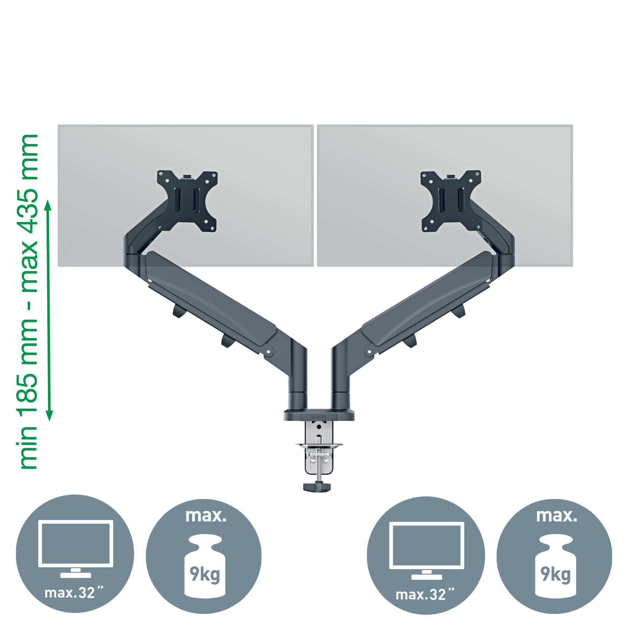 MONITORARM LEITZ ERGO DUAL MULTIJUSTERBAR FJEDER