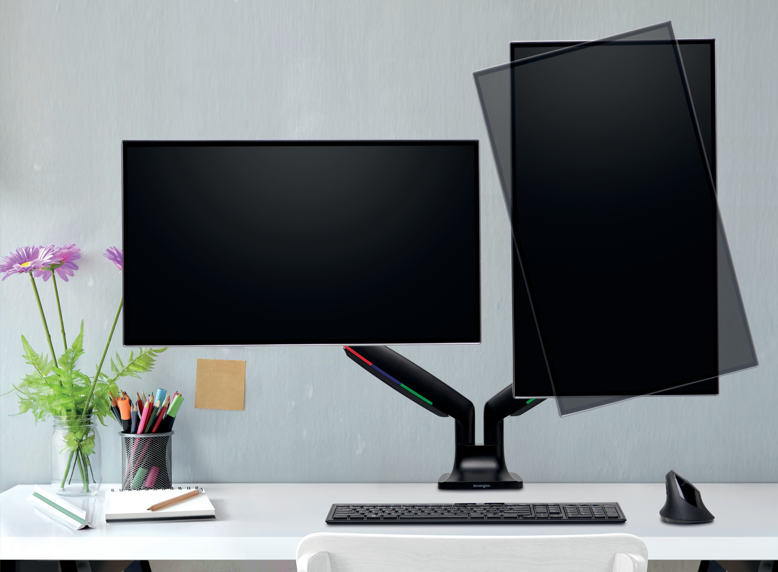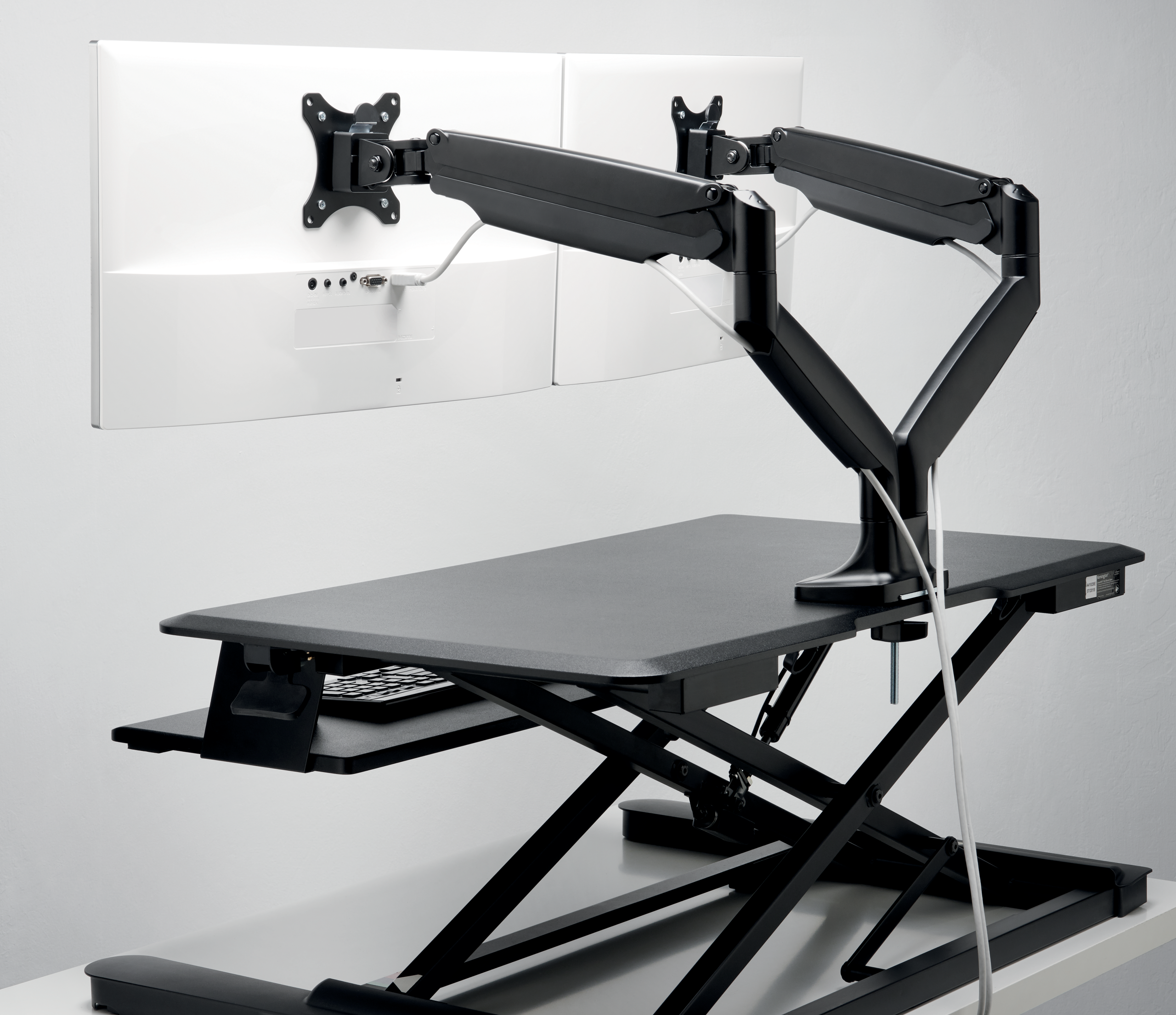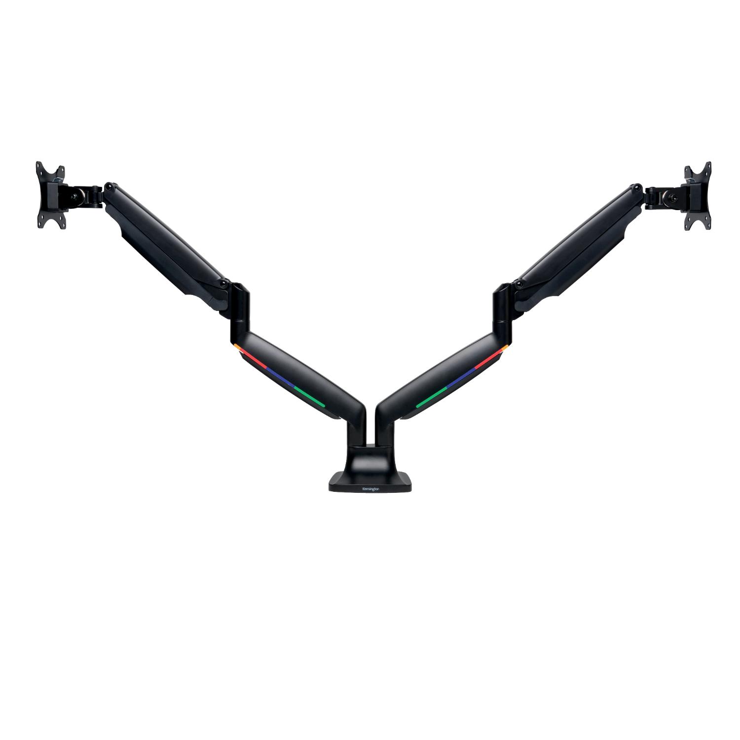 SmartFit® One-Touch dobbelt monitorarm gør det nemt at finde den rette skærmhøjde til en neutral, behagelig kropsholdning med sit patenterede SmartFit®-system og fuldt bevægende design. Testet til at opfylde ANSI / BIFMA-standarder og en kraftig konstruktion garanterer stabilitet i hver position, mens dens gasfjedermonteringsbeslag gør det nemt at justere skærmens højde, dybde og vinkel fra tvær til stående tilstand. Det indbyggede kabelhåndteringssystem organiserer og skjuler kabler, mens armen løfter din eksterne skærm op og ud af vejen, fjerner og rydder værdifuld skrivebordsplads på én gang.