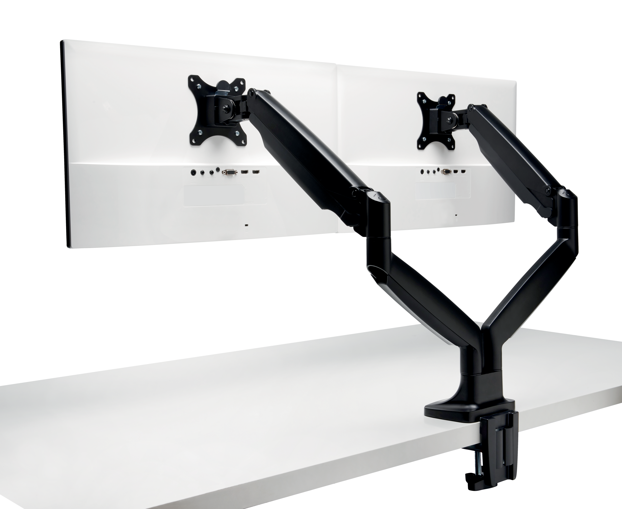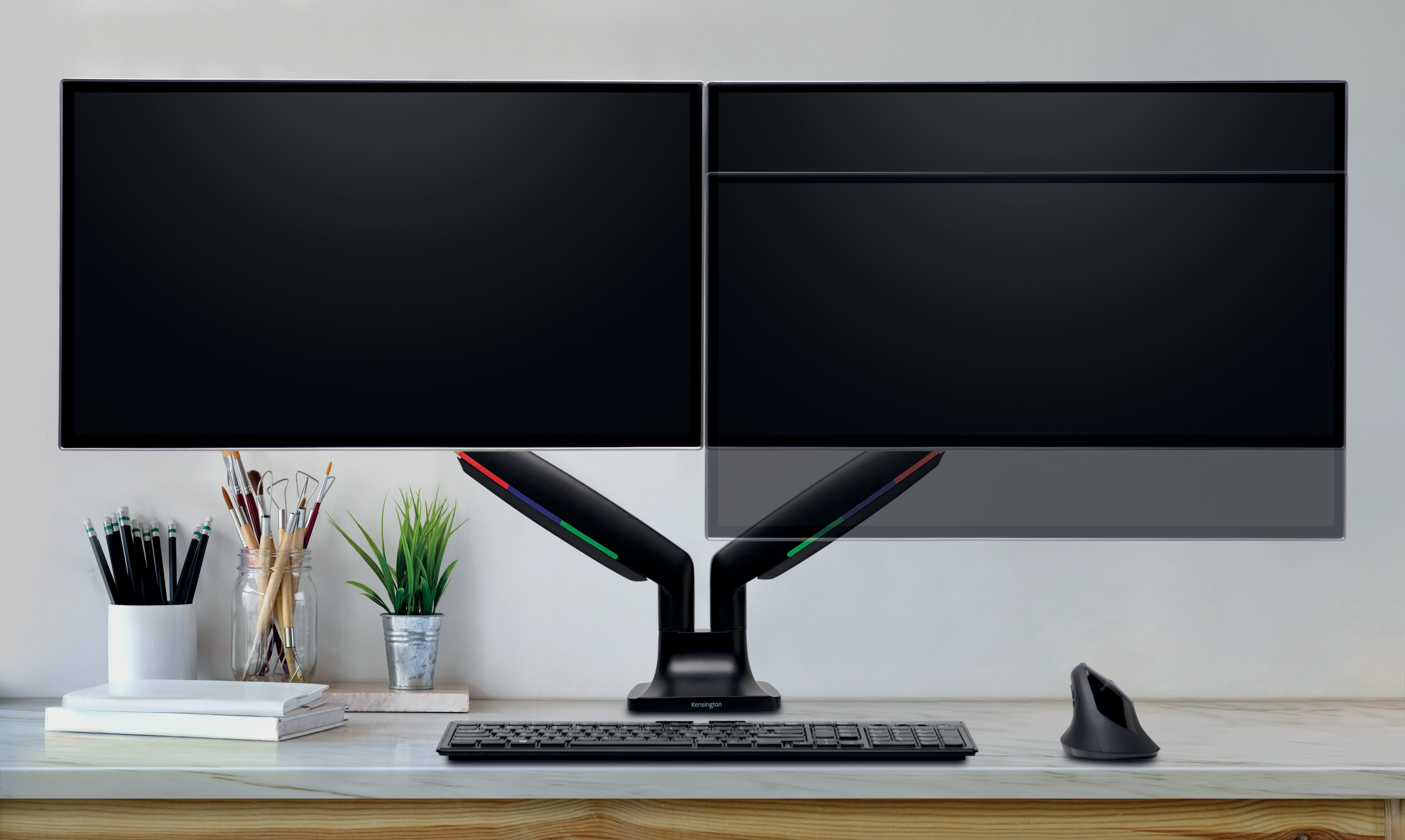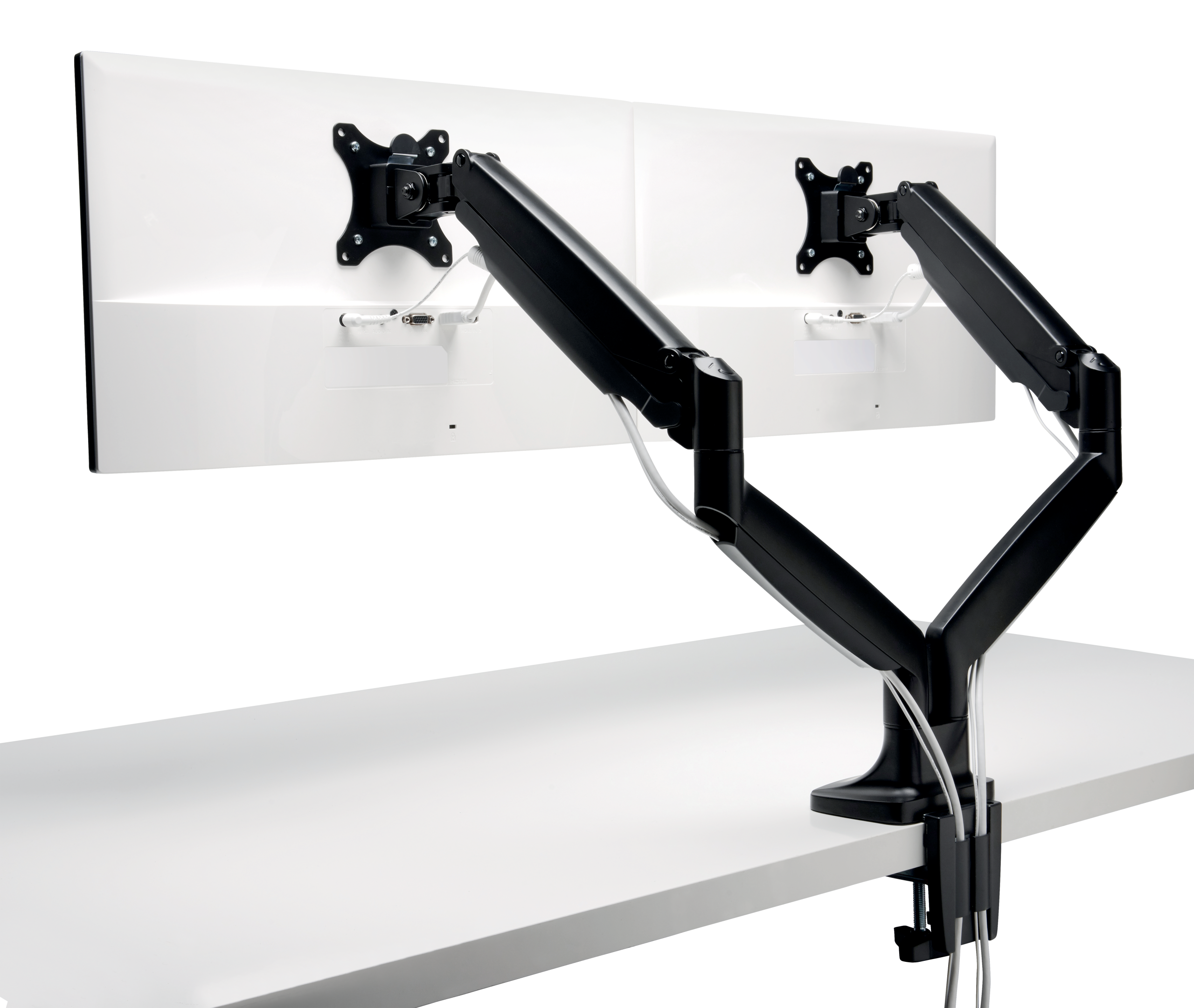 SmartFit® One-Touch dobbelt monitorarm gør det nemt at finde den rette skærmhøjde til en neutral, behagelig kropsholdning med sit patenterede SmartFit®-system og fuldt bevægende design. Testet til at opfylde ANSI / BIFMA-standarder og en kraftig konstruktion garanterer stabilitet i hver position, mens dens gasfjedermonteringsbeslag gør det nemt at justere skærmens højde, dybde og vinkel fra tvær til stående tilstand. Det indbyggede kabelhåndteringssystem organiserer og skjuler kabler, mens armen løfter din eksterne skærm op og ud af vejen, fjerner og rydder værdifuld skrivebordsplads på én gang.