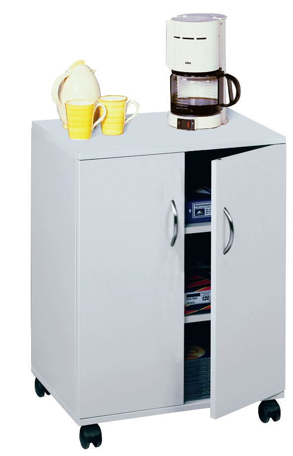 Multifunktionsvogn 74/53 lukketVogn/skab af malamin, to faste og to flytbare hylder og døre.