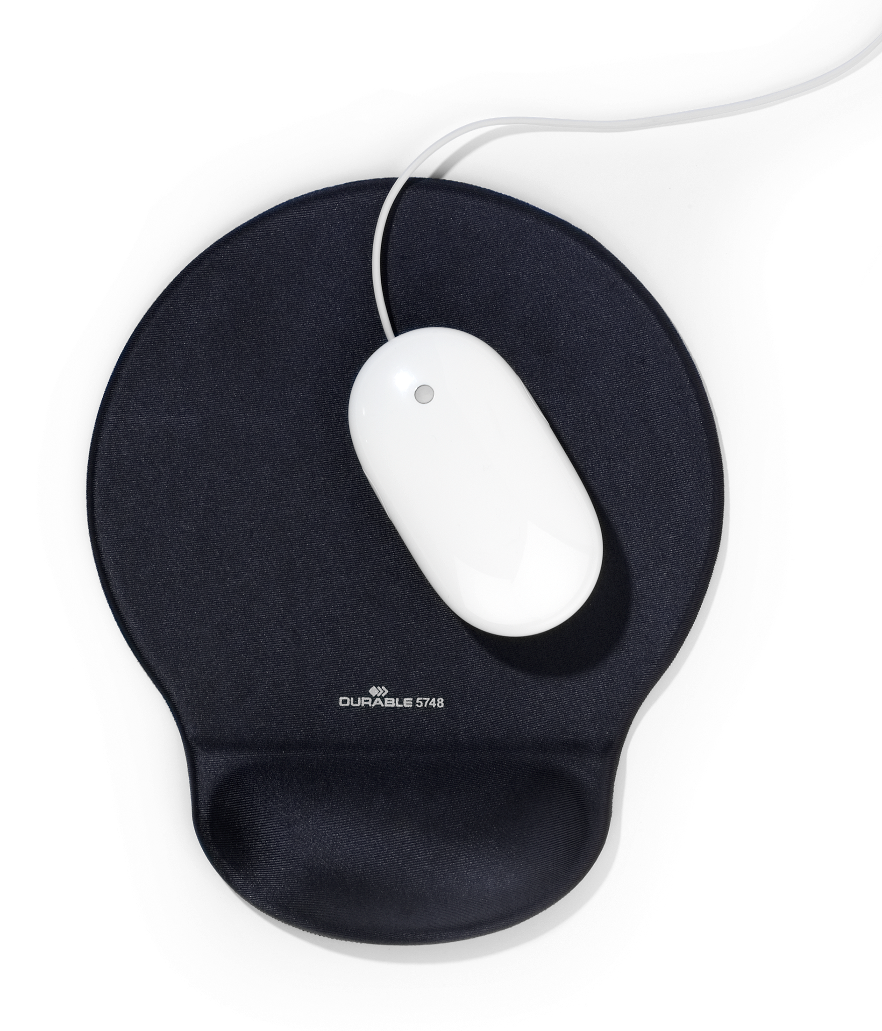 Ergonomisk musemåtte med gel fyldt håndledsstøtte der former sig efter dit håndled for at forhindre museskader. Top klædt med polyester og skridsikker underside. Mål: BxHxD 230x26x260mm.