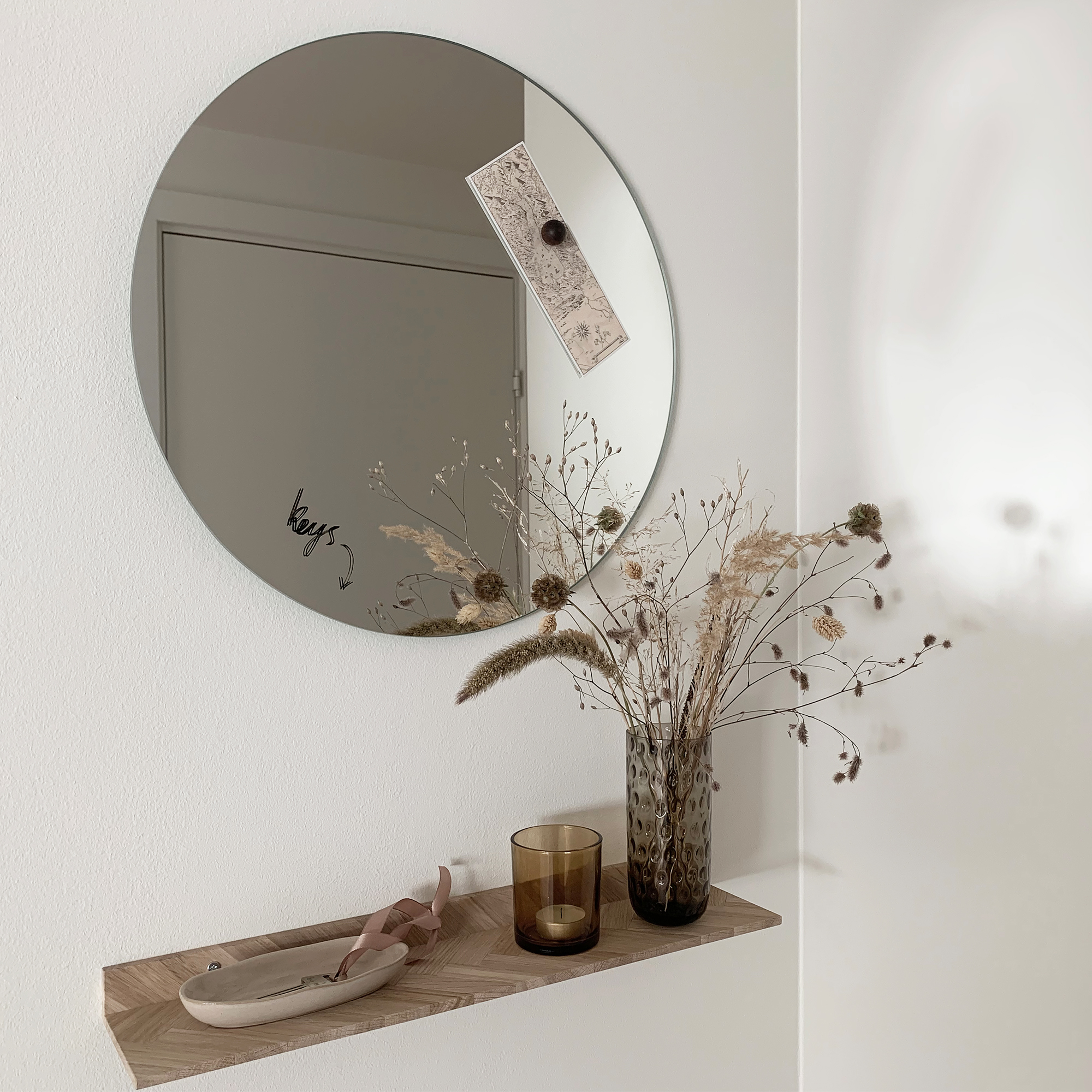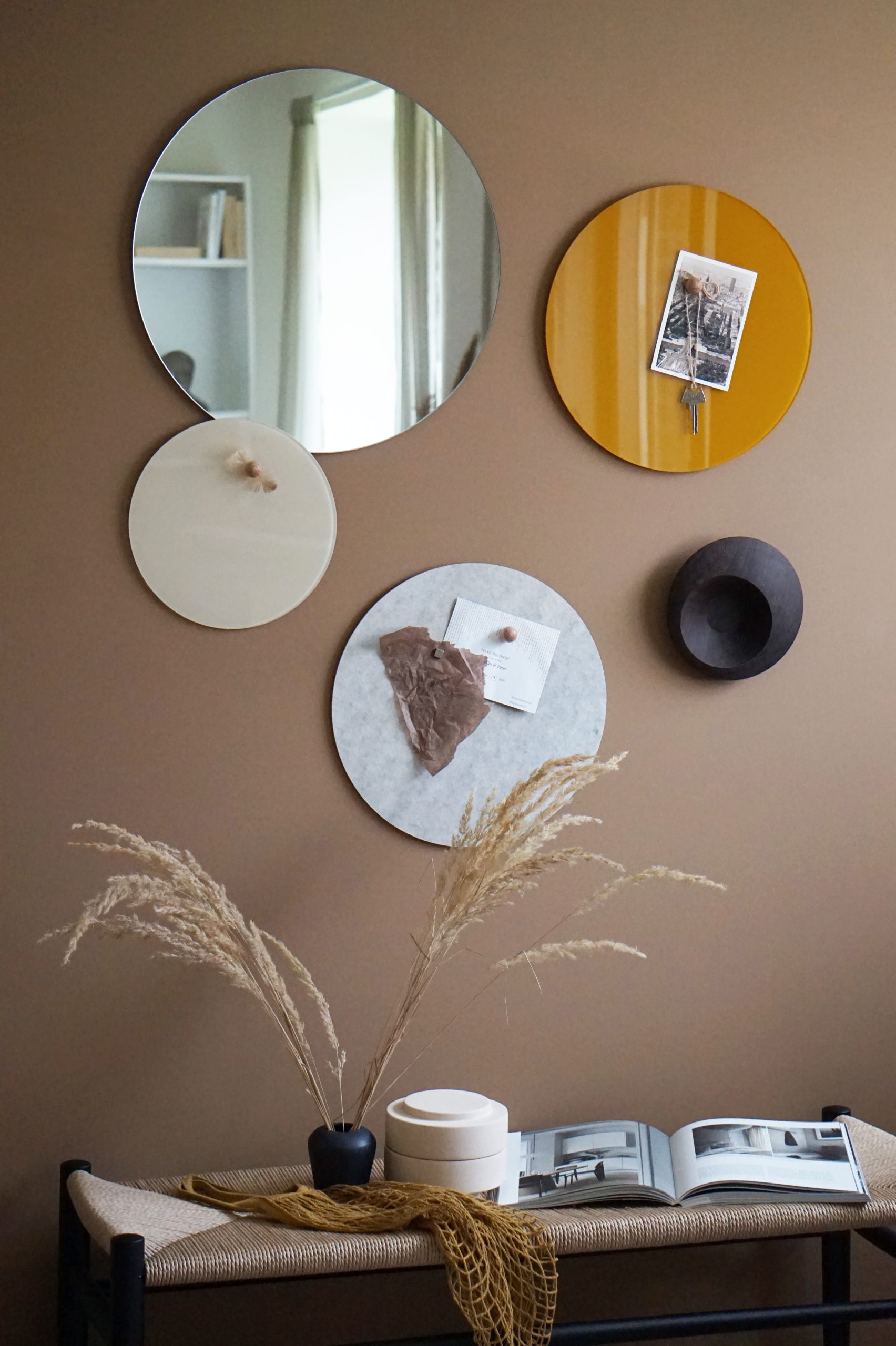 NAGA nord Magnetisk Cirkel tavle dia 45 cm. Spejl.Sæt ting på tavlen med Super Stærke magneter.Man kan også skrive på spejlet med en kridt marker, eller med en almindelig whiteboard marker. Når teksten er tør, kan den nemt viskes ud igen, brug en tavlesvamp eller en tør klud.Til grundig rengøring skal du bruge tavlerens eller almindeligt glaspudsemiddel og en blød klud. Det er vigtigt, at du bruger en blød klud for at undgå at ridse spejlet.Ophæng: Se monteringsvejledning under fanen vejledninger