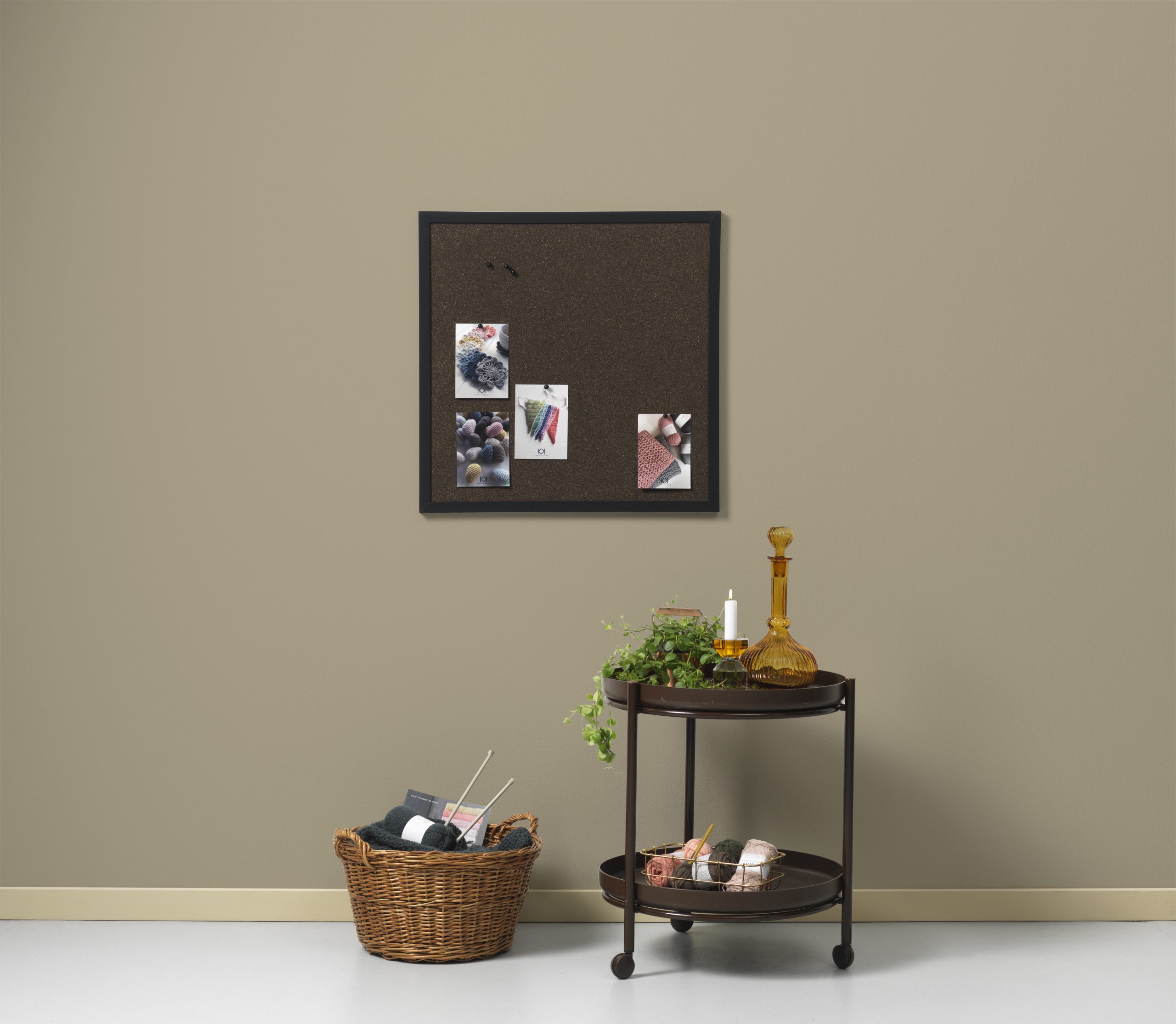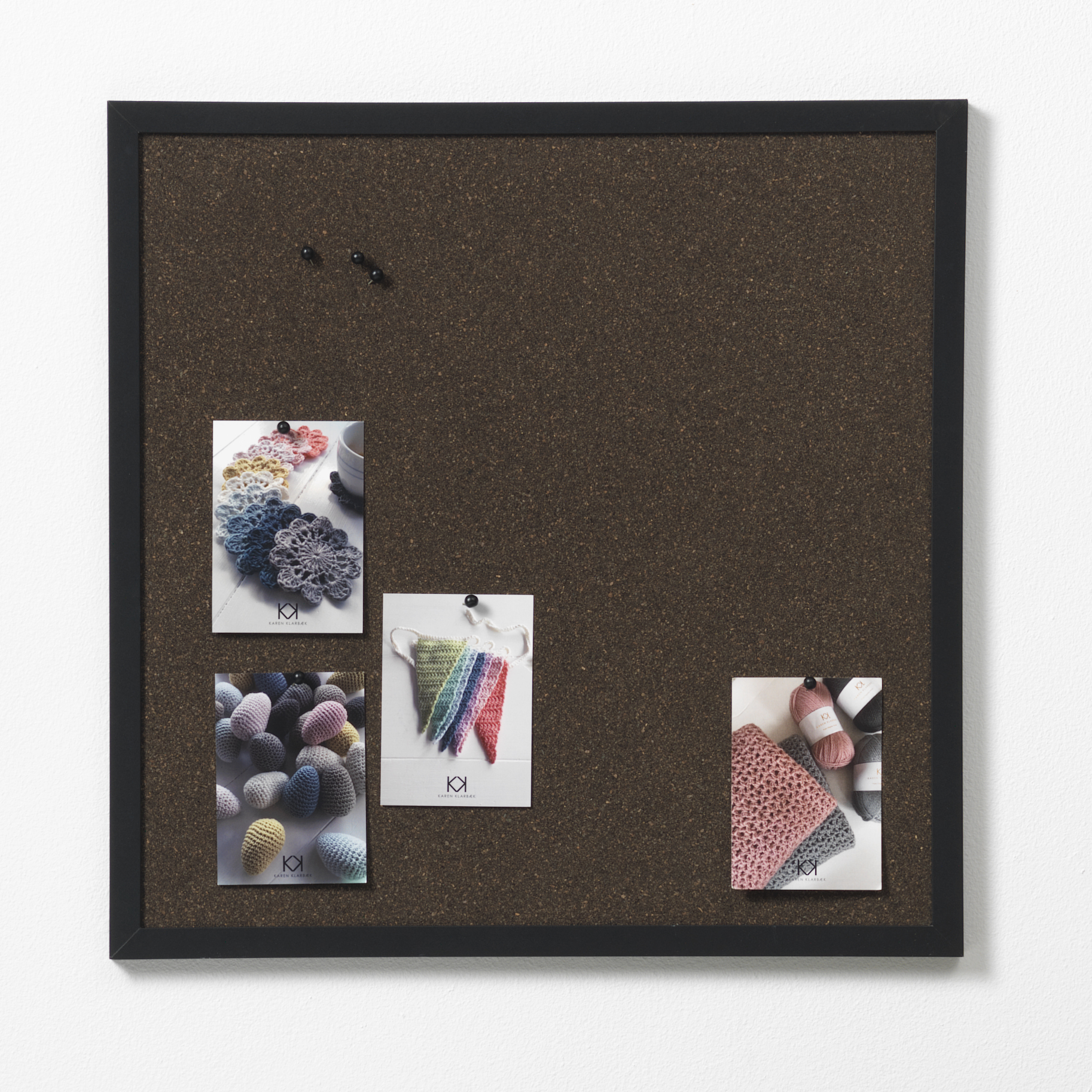 Kork opslagstavle til vægOpslagstavle i mørk kork til væggen, som passer ind i en moderne indretning. Tavlen kommer med en sort MDF ramme på 3 cm, der komplimenterer det mørke kork. Med tegnestifter og push-pins kan du nemt hænge ting op på tavlen og bruge den som opslagstavle. Indret dit hjem eller sommerhus med fine tavler i mørkt kork.Kork opslagstavlen måler 60 x 60 cm. På bagsiden er der to beslag, som gør det muligt at hænge tavlen op på væggen ved hjælp af to skruer. Bemærk, at skruer ikke medfølger.Se hele udvalget af opslagstavler til væggen.