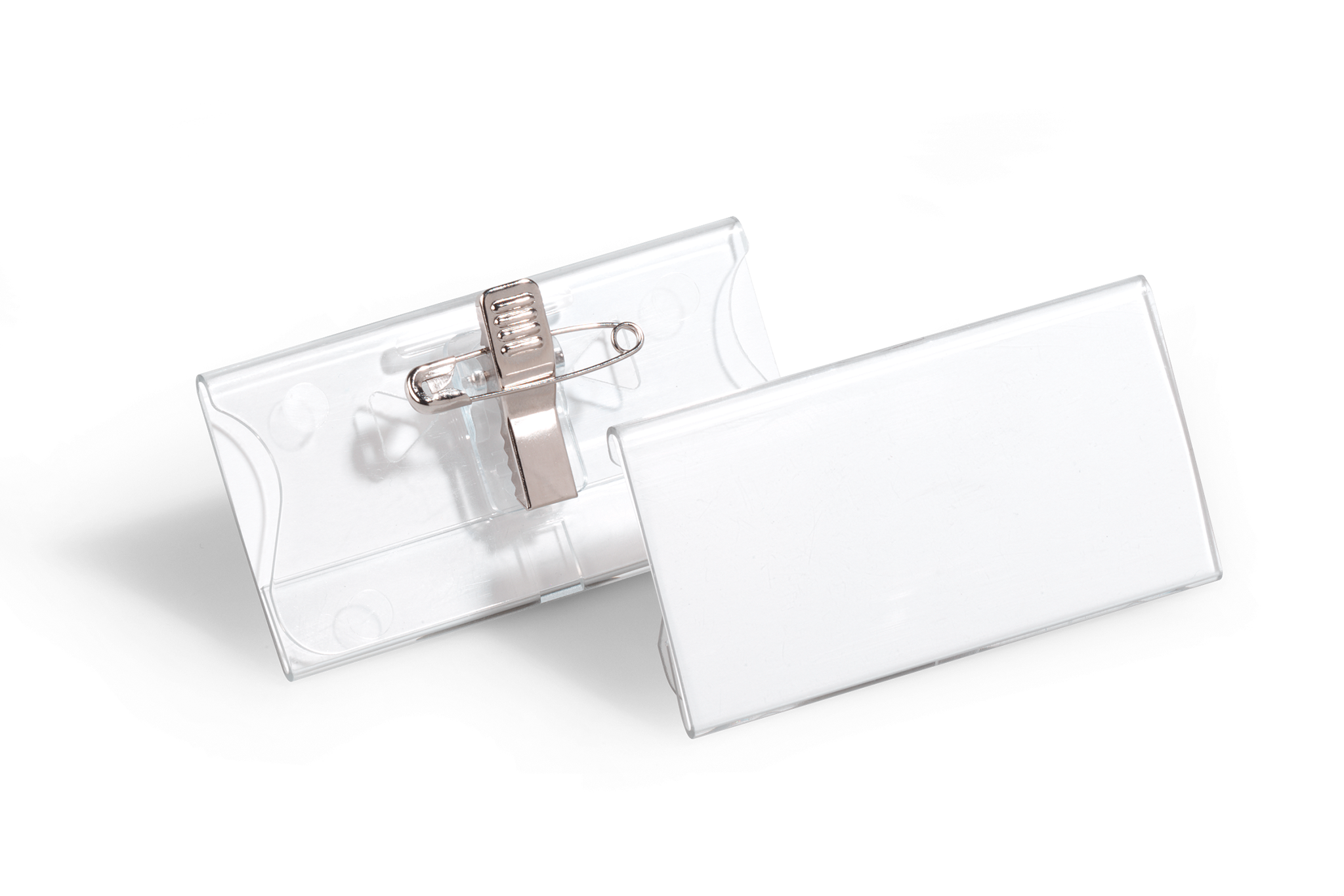 Navneskilt af akryl med kombiklemme. Kombineret sikkerhedsnål/klemme giver valgmulighed for at fastsætte på tøjet. Nålespidsen er skjult for at forhindre skader på tøj. Kan også fastgøres i en brystlomme til fronten (navneskilt) vises, og bagsiden er på indersiden af lommen, fordi bunden er muligt at åbne et hul. Enkelt at udskifte navneetiketter ved hjælp af tommegreb. Indstik medfølger. Mål indstik: 40x75mm (HxB). Indstiksetiket på A4 ark til udskrivning i printer kan bestilles separat (varenr. 145302). Design selv en personlig designet kongresmærke med gratis skabelon på www.duraprint.dk