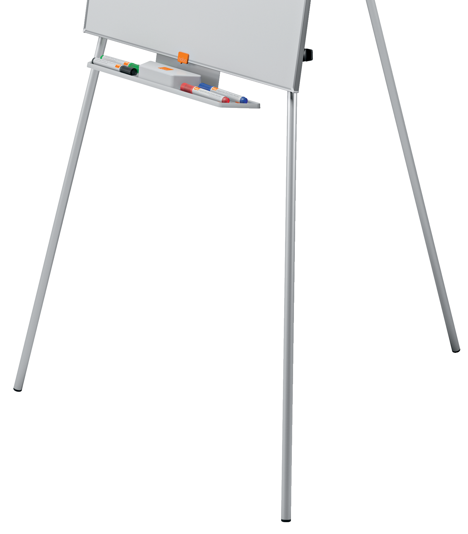 Magnetisk flipover i lakeret stål på trefod. Med elegant, smal ramme, der maksimerer pladsen på tavlen. Den rummelige pennebakke sidder under tavlen uden at gå indover overfladen. Trefod benene er højdejusterbare og kan trækkes helt sammen ved opbevaring og flytning. Magnetisk whiteboard ståloverflade giver forøget sletbarhed.
