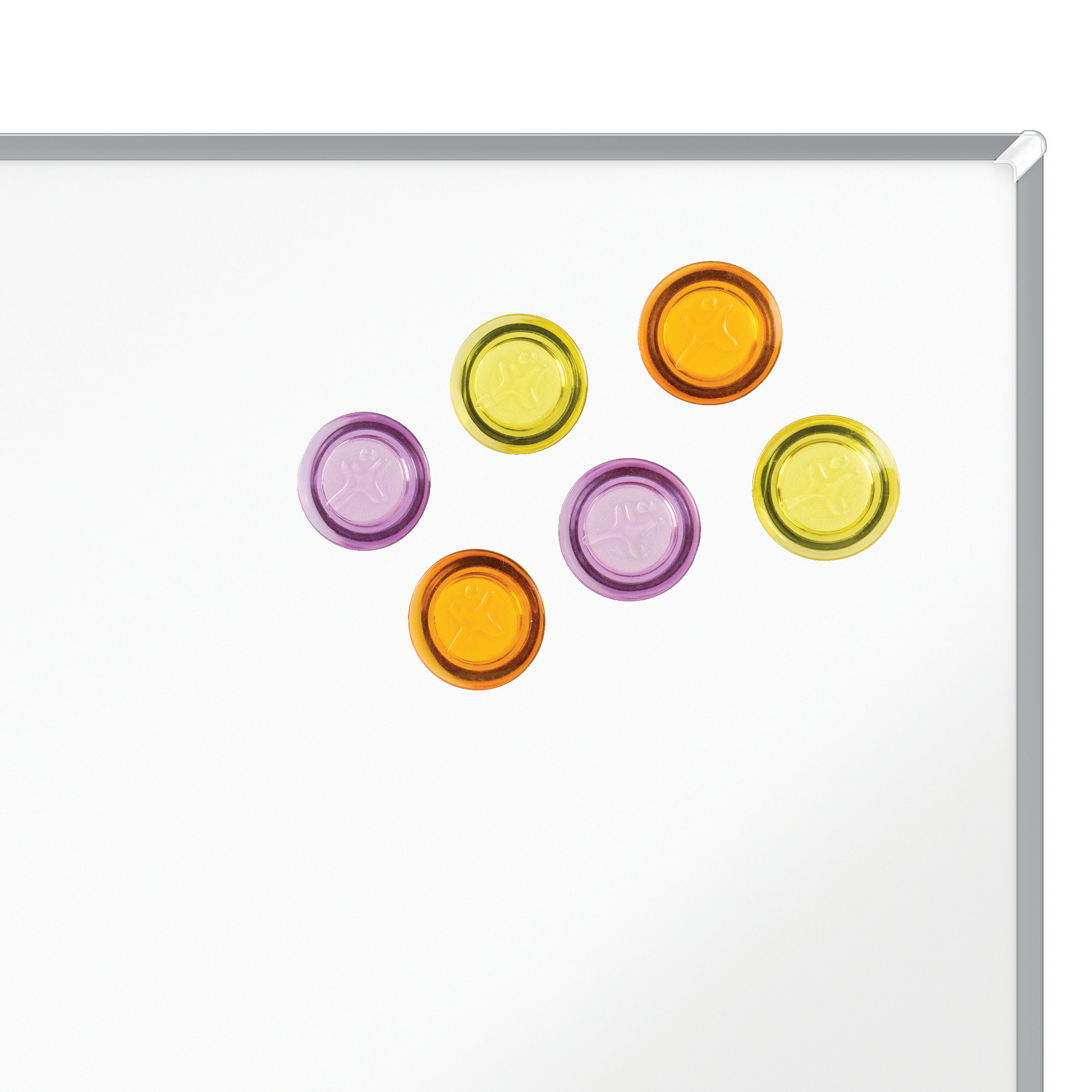 Runde magneter er det perfekte værktøj til at vise og visualisere ideer til fælles brainstorming på magnetiske whiteboards eller bruge som køleskabsmagneter til at fastgøre påmindelser og vigtige beskeder pænt derhjemme. Disse farvede magneter holder 6 x 80g A4-ark sikkert og er 30 mm i diameter. Magnetstyrke 600g, pakke med 6 assorterede magneter (2 x gul, 2 x lilla, 2 x orange)