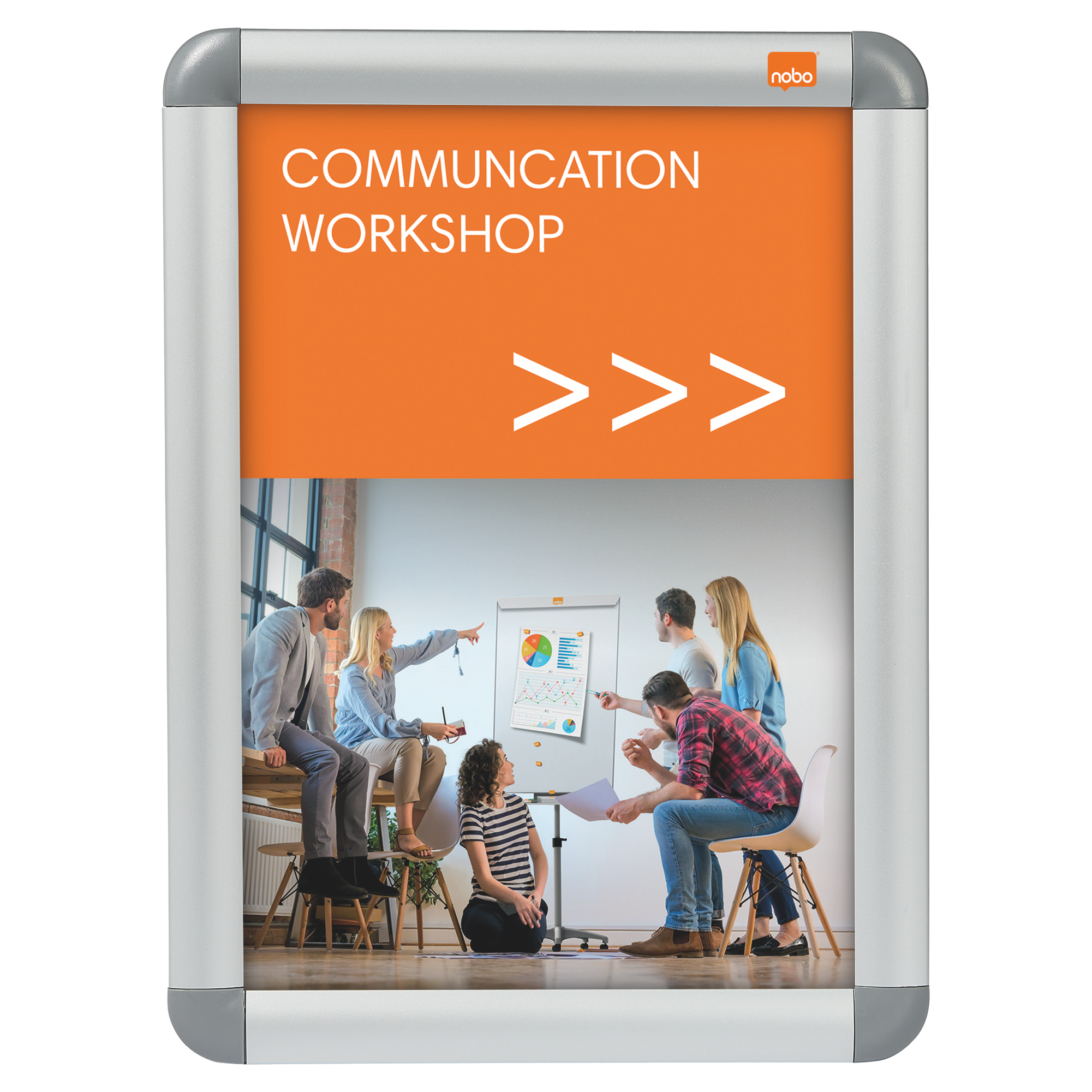 Vægmonteret skifteramme til sikker visning af plakater, skilte og information. Den smarte aluminiums klikramme giver en professionel finish og giver hurtig og nem ændring af indhold. Denne stabile og sikre skiltholder har en bagside, der sættes fast til væggen ved hjælp af hjørnemontage, og det beskyttende antirefleks glas er let at tørre af. En ideel løsning til visning af midlertidige eller permanente plakater og skilte. Indholdsstørrelse op til A4.