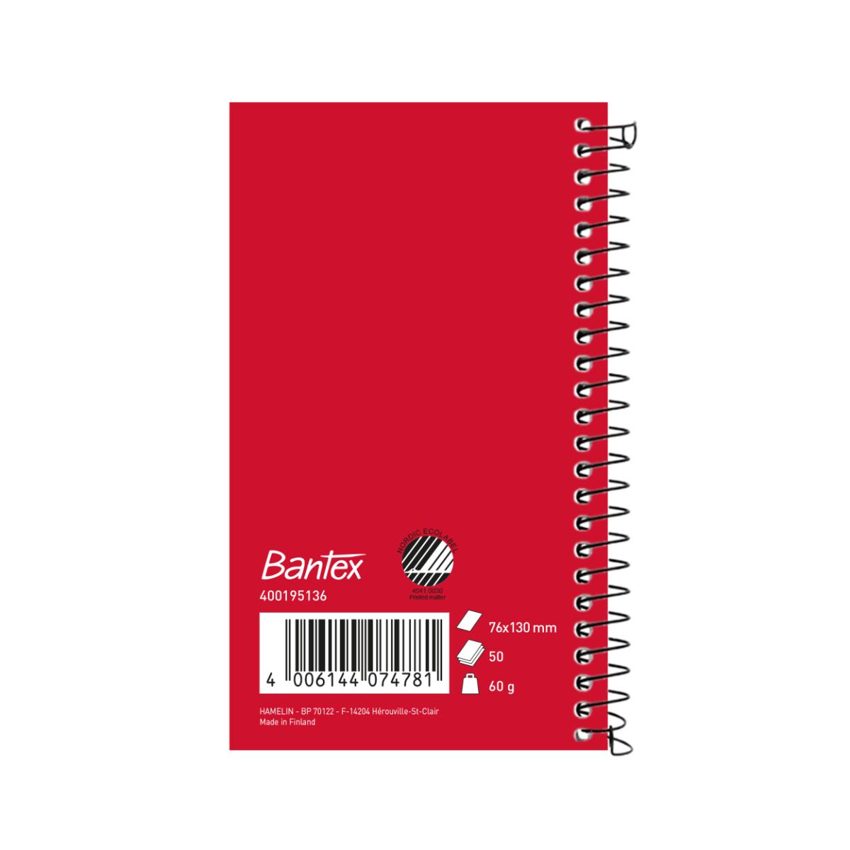 Praktisk Notesblok der gør det nemt at strukturere og organisere dine tanker og noter. Den måler 76 x 130 mm og indeholder 50 ark. Arkene er linjerede på begge sider. Det giver mulighed for at skrive på begge sider og giver rigeligt med plads. Papiret er 60 grams papir og farven er hvid med tydelig linjering. Den har spiral i venstre side som sikrer at man nemt kan skrive på siderne uden at holde siderne nede. Omslag i coated karton