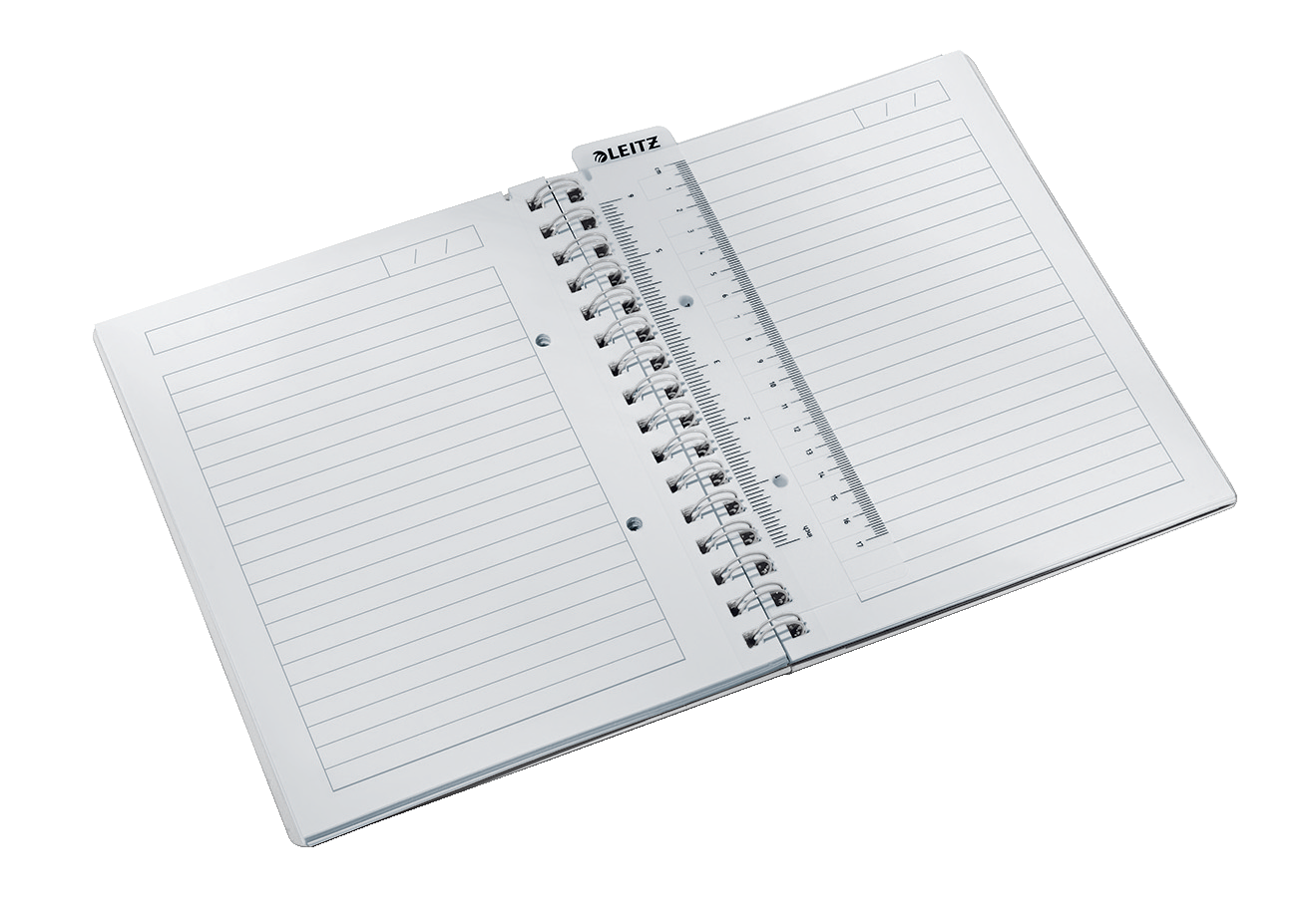 80 ark, microperforering og med 4 huller. Lineal. Integreret lomme til løse notater.