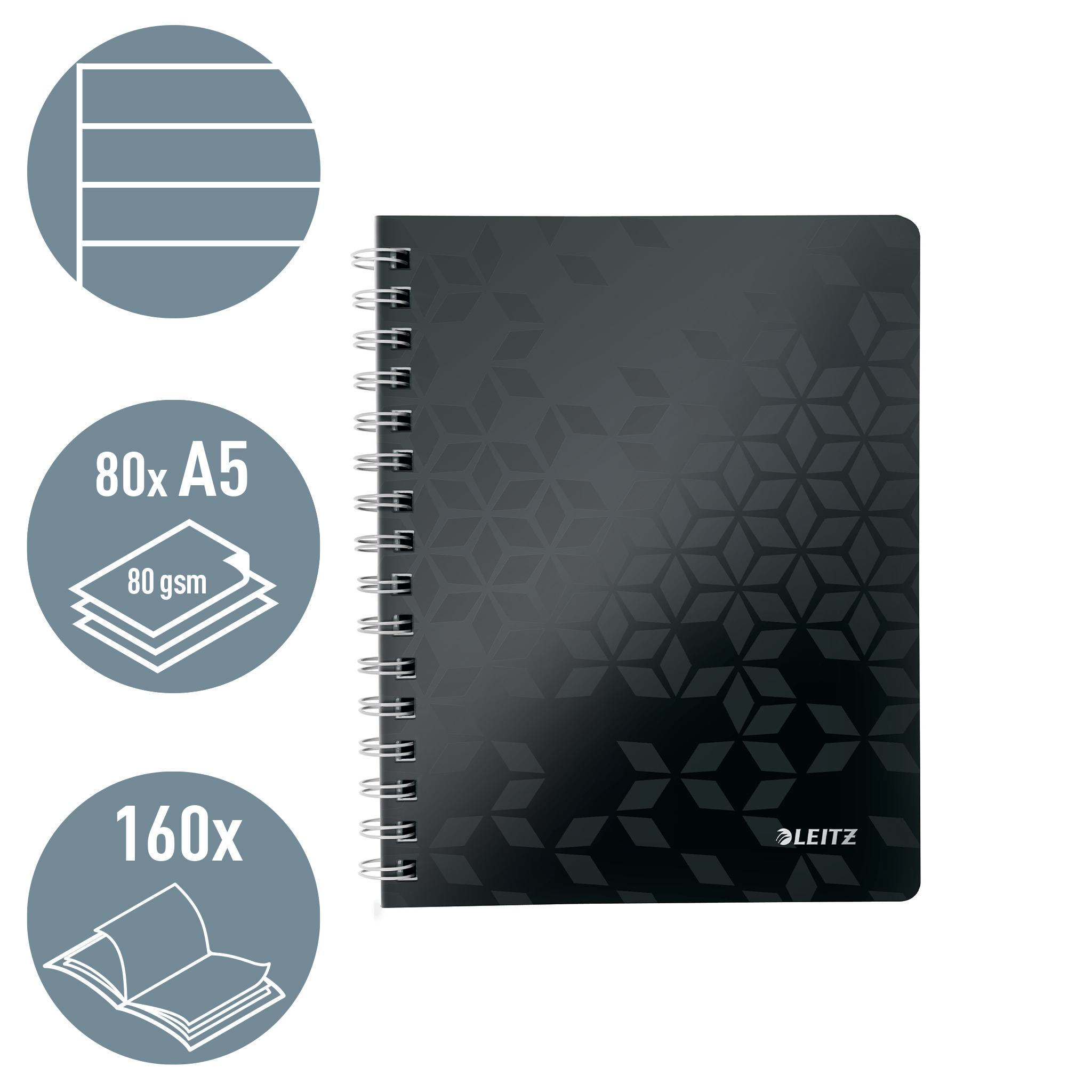Notesblok Leitz WOW PP A5 linjeret 80 gram 80 ark