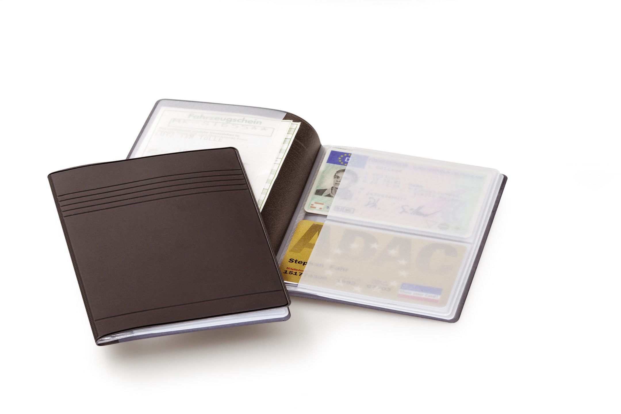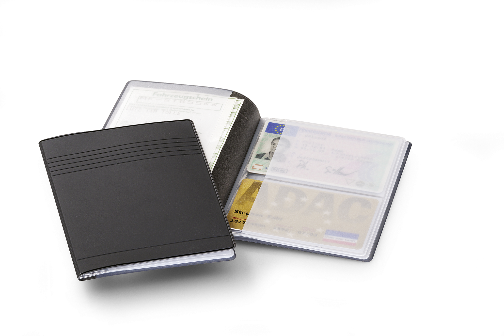 Mappe til identitets- eller kreditkort med indsvejsede lommer Til 4 kredit-, check- eller medlemskort i størrelser op til 85 x 54 mm Til 4 identitetsdokumenter i størrelser op til 80 x 115 mm