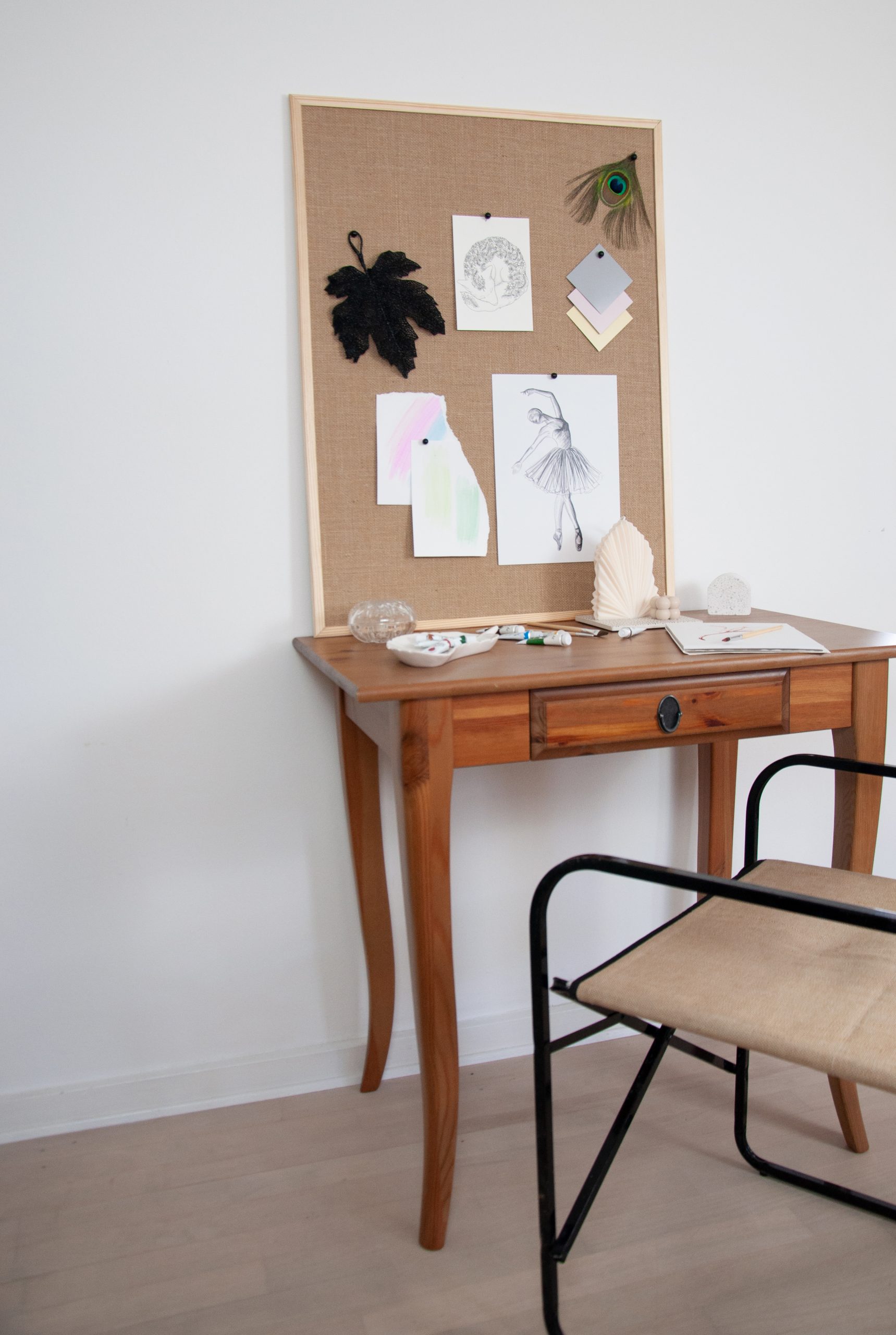 Opslagstavle med hessian stofSmart hessian opslagstavle med træramme. Tavlen er perfekt til hjemmet, da du nemt kan hænge kort, tørrede blomster, smykker m.m. op med tegnestifter eller push-pins. Kun fantasien sætter grænserne og du kan både hænge tavlen på kontoret, soveværelset, entreen eller i stuen. Du kan med fordel kombinere tavlen med andre NAGA produkter og tavler, for en fin indretning af din væg.Opslagstavlen måler 60 x 40 cm og kommer med 5 assorterede pins.Ophæng: Med en hammer slår du monteringsbeslaget ind i rammen på opslagstavlen. Du kan dermed selv bestemme, om opslagstavlen skal hænge lodret eller vandret. Monteringsbeslag og vejledning medfølger. Skuer til væggen medfølger ikke.
