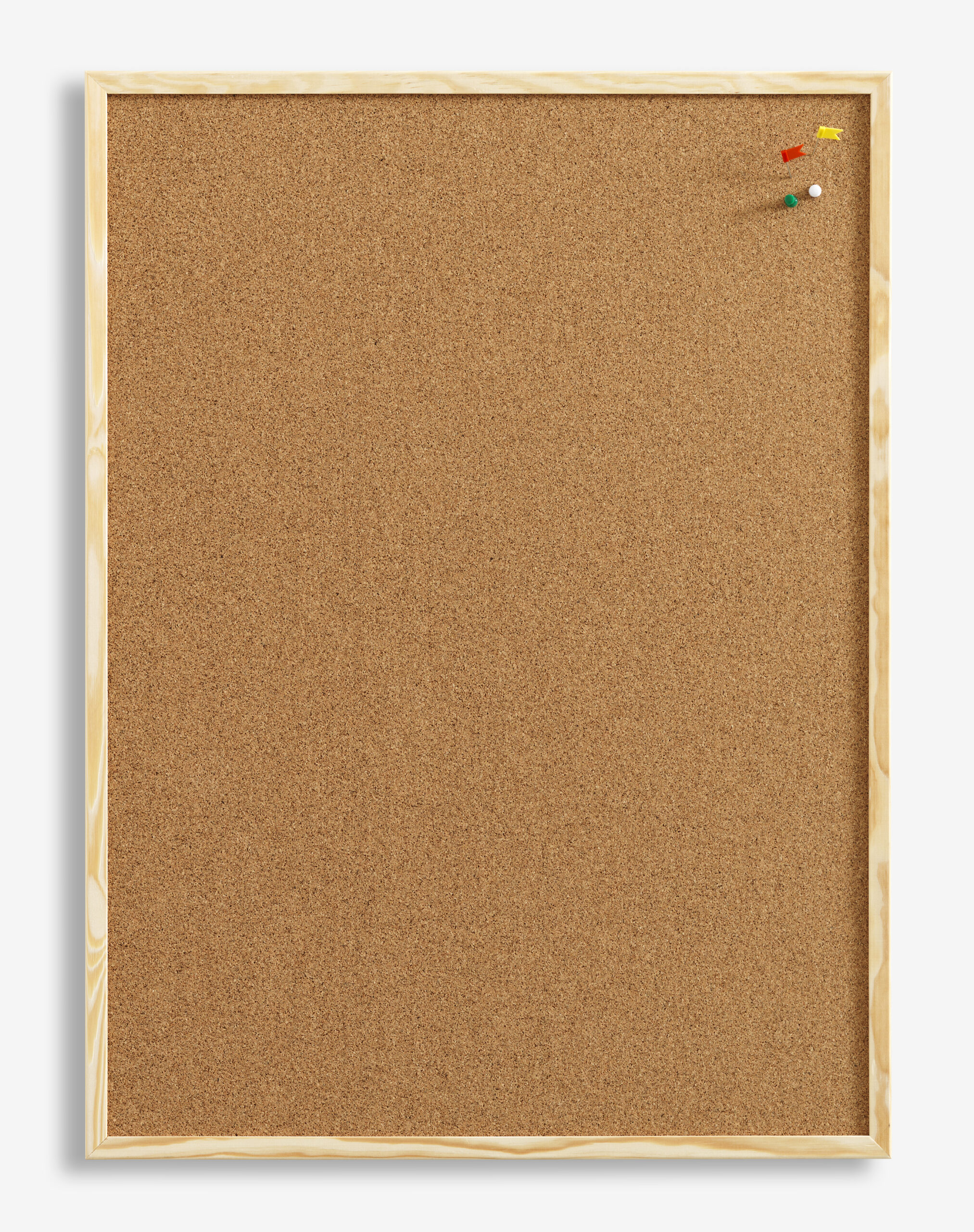 Stor kork opslagstavleEn smart opslagstavle i kork med træramme, der både bruges i indretningen af hjemmet samt kontoret. Hæng nemt tavlen på væggen og sæt ting fast med pins og tegnestifter. Opslagstavlen har et retro og traditionelt udseende, som passer godt ind i de nuværende indretningstrends.Kork opslagstavlen måler 100 x 60 cm og kommer med 5 assorterede pins.Ophæng: Med en hammer slår du monteringsbeslaget ind i rammen på opslagstavlen. Du kan dermed selv bestemme, om opslagstavlen skal hænge lodret eller vandret. Monteringsbeslag og vejledning medfølger. Skuer til væggen medfølger ikke.