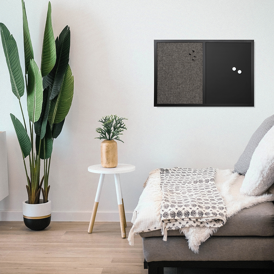 60 x 40 cm. Combi board, Black hessian/ magnetic chalk