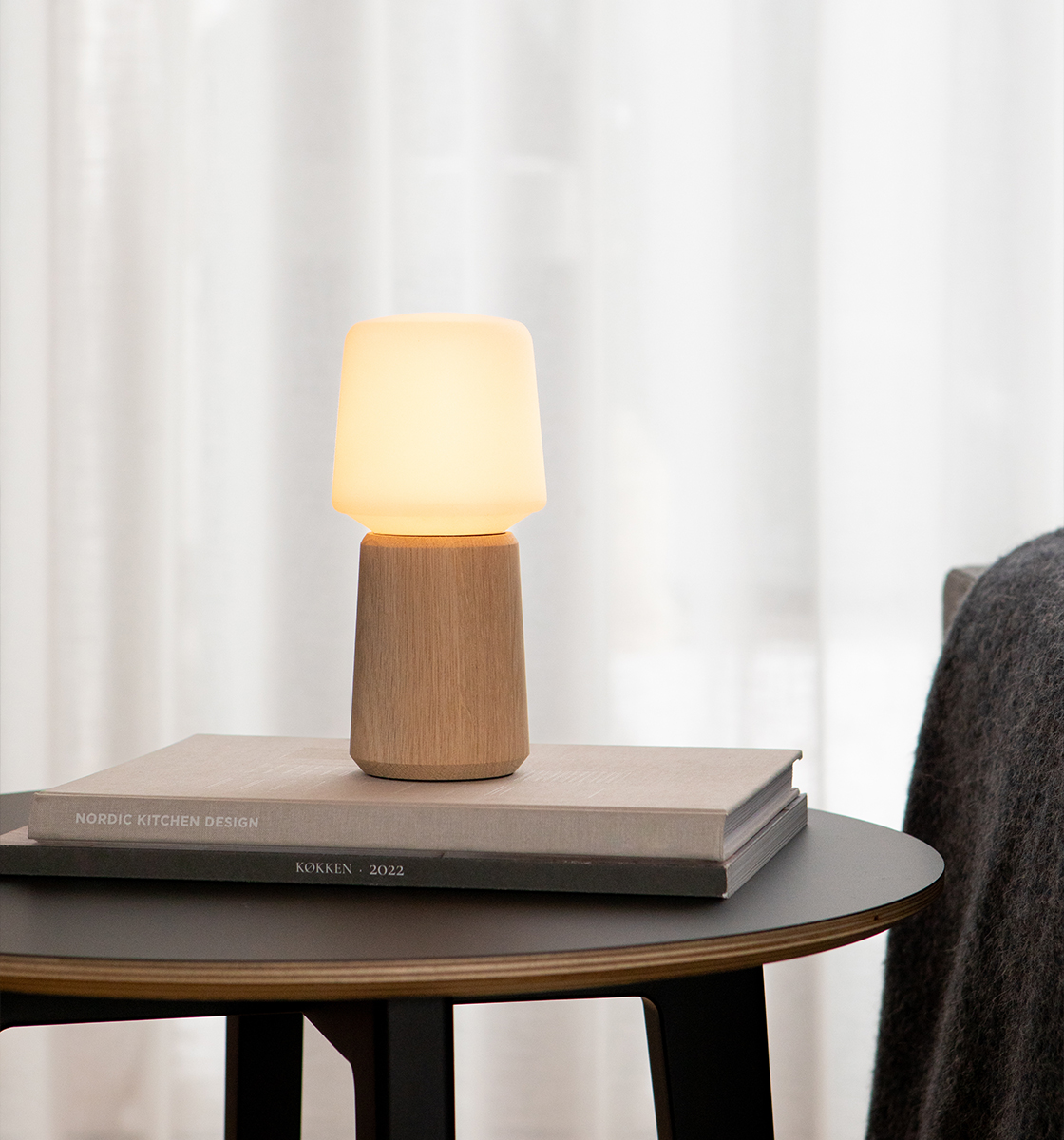 Oslo basen er skabt som en holder til Lamp Intelligent. Med inspiration fra den skandinaviske natur er designet udført i massivt kvalitetsegetræ. Ved at kombinere Oslo-holderen med Lamp Intelligent kan du skabe den fineste trådløse lampe til dit hjem.