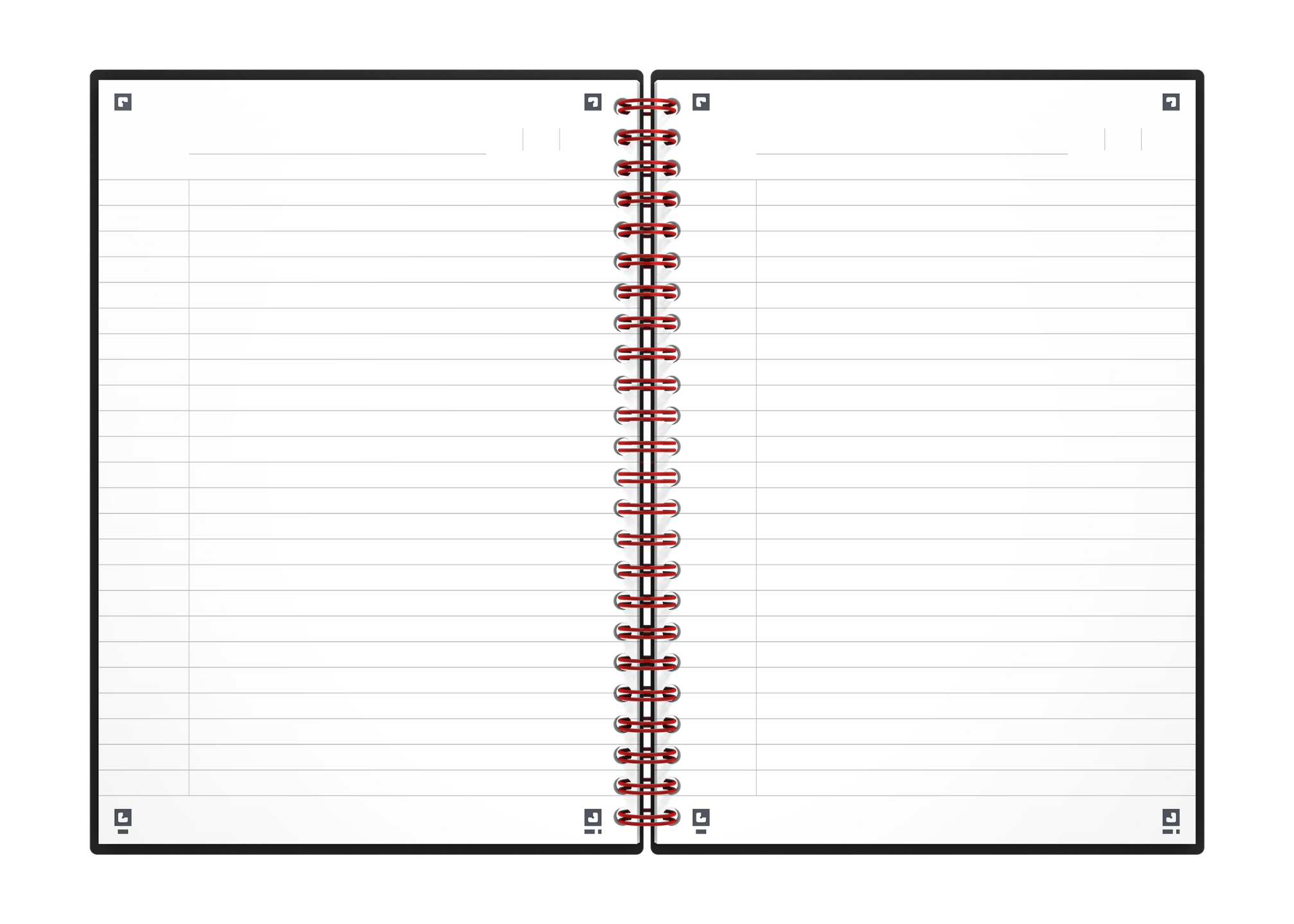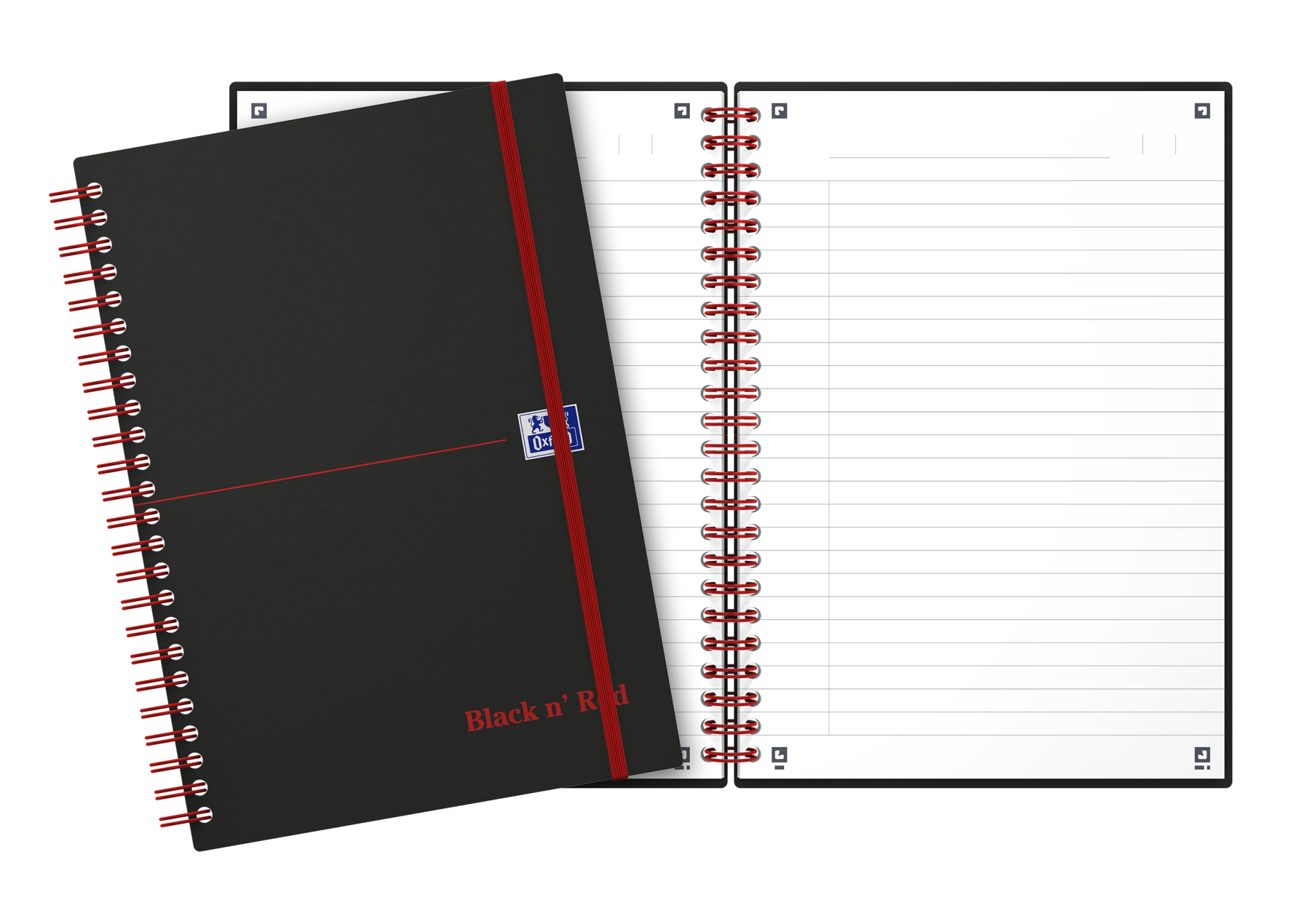 Notebook i A5, linjeret med margin, 140 sider. Takket være det ekstra hvide og glatte OPTIK PAPER® i 90 g/m2 kan du skrive på begge sider af arket, uden at blækket bløder igennem. Linjeret med margin. Rød plastovertrukket dobbeltspiral i ryggen gør det muligt at lægge notesbogen fladt mod underlaget eller at åbne den helt op, hvilket sikrer maksimal komfort og fleksibilitet. Fleksibelt, slidstærkt omslag i sort polypropylen med tekstureret finish. Arkene er kompatible med den gratis Scribzee®-smartphoneapp, så du nemt kan scanne, gemme og organisere dine noter. OXFORDs eksklusive Optik Paper® har både fået EUs miljømærke (lav miljøbelastning fra de papirfabrikker, der producerer papiret) og PEFC-certificering (bæredygtig skovforvaltning). Med elastiklukning, der beskytter notesbogens indhold. Informationsside på forsiden af notesbogen, hvor du kan skrive vigtige referenceinformationer.