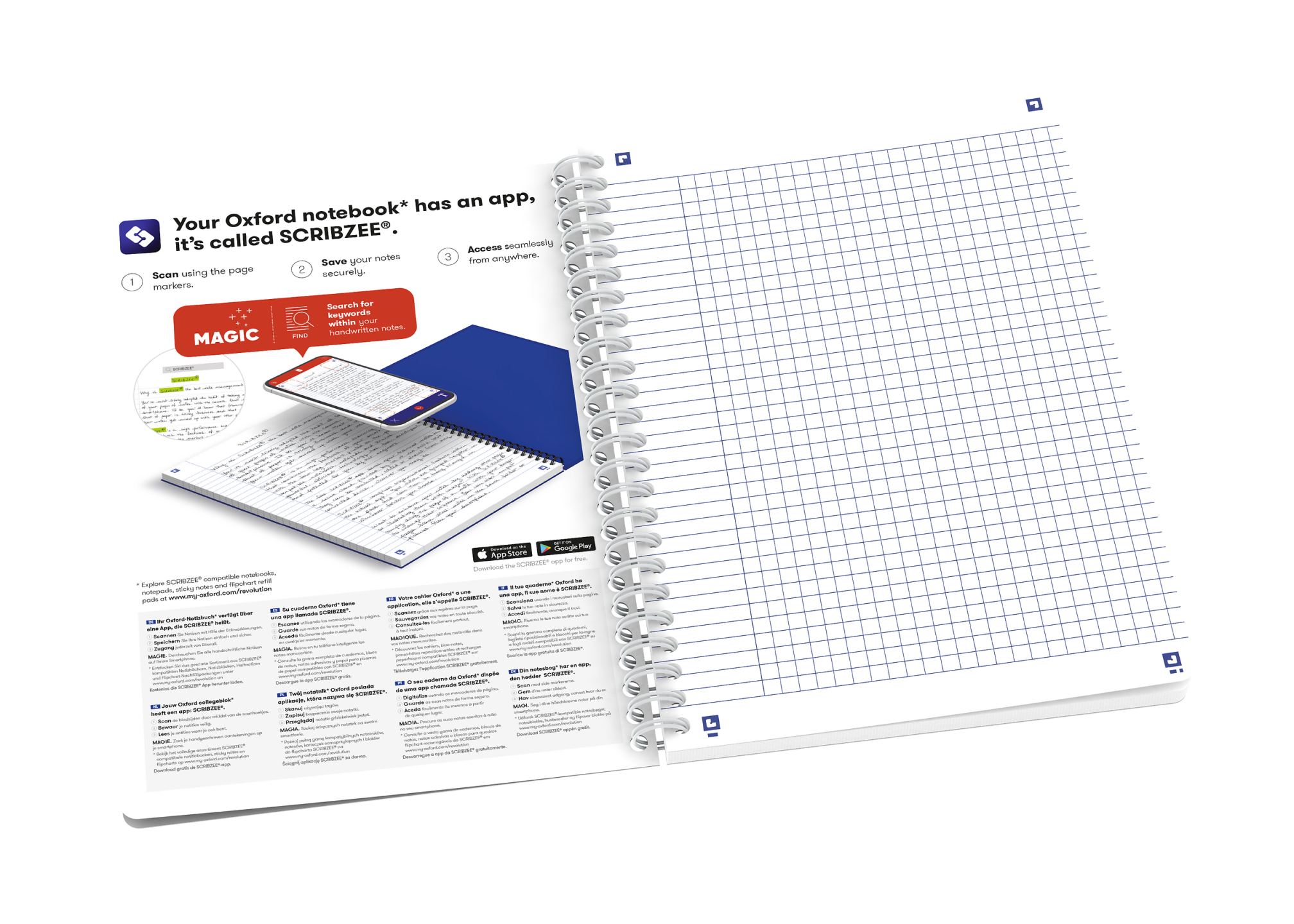Notebook i A5, kvadreret 5×5 mm med margin, 120 sider. Takket være det ekstra hvide og glatte OPTIK PAPER® i 90 g/m2 kan du skrive på begge sider af arket, uden at blækket bløder igennem. Kvadrering i 5×5 mm med margen på hele siden. Den hvide dobbeltspiral i ryggen gør det muligt at lægge notesbogen helt fladt mod underlaget og at åbne siderne 360 grader. Det hårde omslag i overstørrelse med blomsterdesign er blødt at røre ved, men robust og beskytter dine noter ekstra godt. Arkene er kompatible med den gratis SCRIBZEE®-smartphoneapp, så du nemt kan scanne, gemme og organisere dine noter. OXFORDs eksklusive Optik Paper® har både fået EU’s miljømærke (lav miljøbelastning fra de papirfabrikker, der producerer papiret) og PEFC™-certificering (bæredygtig skovforvaltning). Informationsside forrest i notesbogen til vigtige oplysninger (datoer, adgangskoder, telefonnumre).