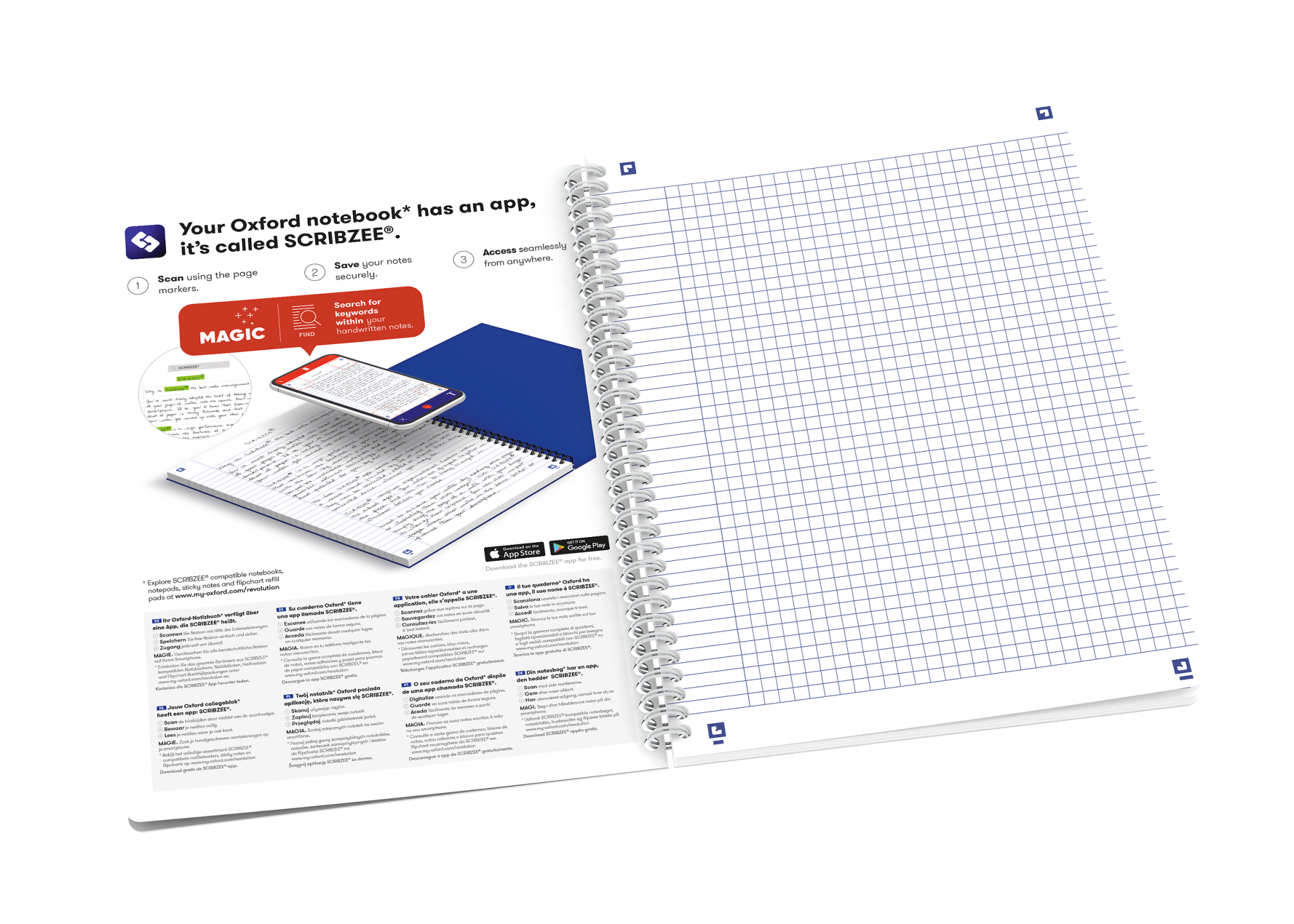 Notebook i B5, kvadreret 5×5 mm med margin, 120 sider. Takket være det ekstra hvide og glatte OPTIK PAPER® i 90 g/m2 kan du skrive på begge sider af arket, uden at blækket bløder igennem. Kvadrering i 5×5 mm med margen på hele siden. Den hvide dobbeltspiral i ryggen gør det muligt at lægge notesbogen helt fladt mod underlaget og at åbne siderne 360 grader. Det hårde omslag i overstørrelse med blomsterdesign er blødt at røre ved, men robust og beskytter dine noter ekstra godt. Arkene er kompatible med den gratis SCRIBZEE®-smartphoneapp, så du nemt kan scanne, gemme og organisere dine noter. OXFORDs eksklusive Optik Paper® har både fået EUs miljømærke (lav miljøbelastning fra de papirfabrikker, der producerer papiret) og PEFC-certificering (bæredygtig skovforvaltning). Informationsside forrest i notesbogen til vigtige oplysninger (datoer, adgangskoder, telefonnumre).