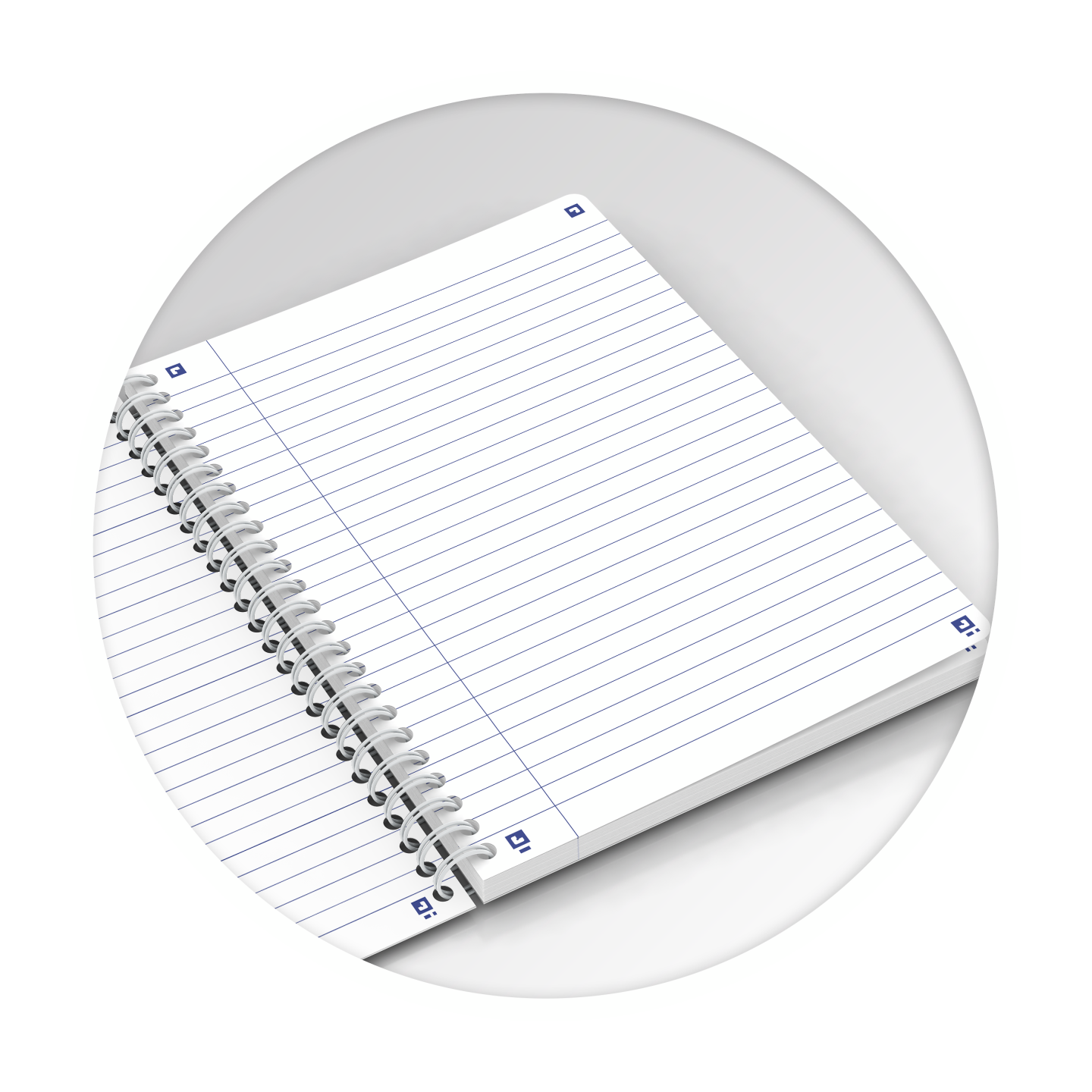 A5-notesbog, linjeret + margen, 120 sider. Ekstra hvidt og glat OPTIK PAPER® på 90 g, så du kan skrive på begge sider uden fare for gennemsivning af blæk. Linjerede sider med margen. Ikke-perforerede ark. Den hvide dobbelttrådsbinding gør det muligt at lægge bogen fladt eller folde den 360° tilbage. Kompatibel med den gratis SCRIBZEE® smartphone-app, der kan bruges til at scanne, gemme, organisere og søge i dine noter. Certificeret med EU-miljømærke, hvilket garanterer en reduceret miljømæssig påvirkning fra papirprodukter gennem hele processen fra råmateriale til destruktion. Informationsside forrest i bogen til at skrive notater med vigtige oplysninger (datoer, adgangskoder, telefonnumre).
