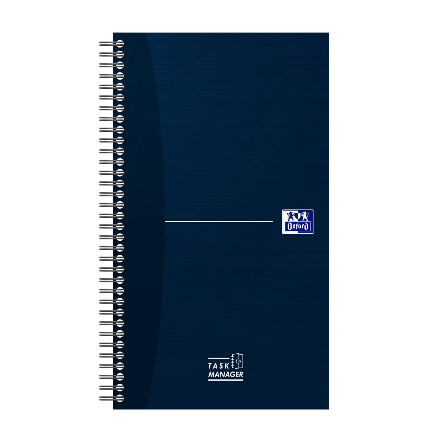 OXFORD Office Essentials 14,1×24,6 cm i blødt papomslag og dobbeltspiral Task Manager 230 sider Særlig linjering Marineblå SCRIBZEE-kompatibel