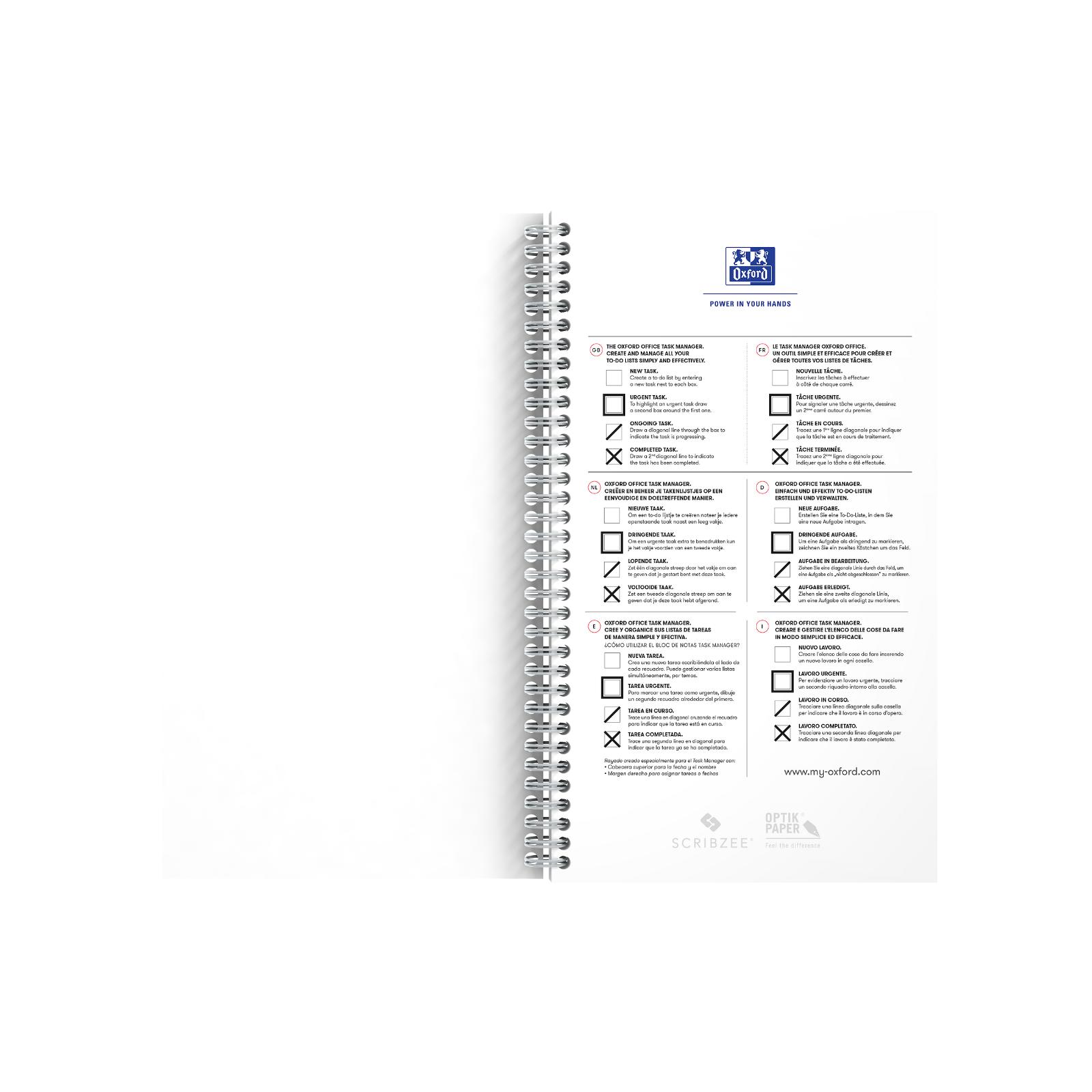 OXFORD Office Essentials Task Manager, 14,1 x 24,6 cm, blødt kartonomslag, dobbeltspiral, 230 linjerede sider, Aqua, kompatibel med SCRIBZEE.