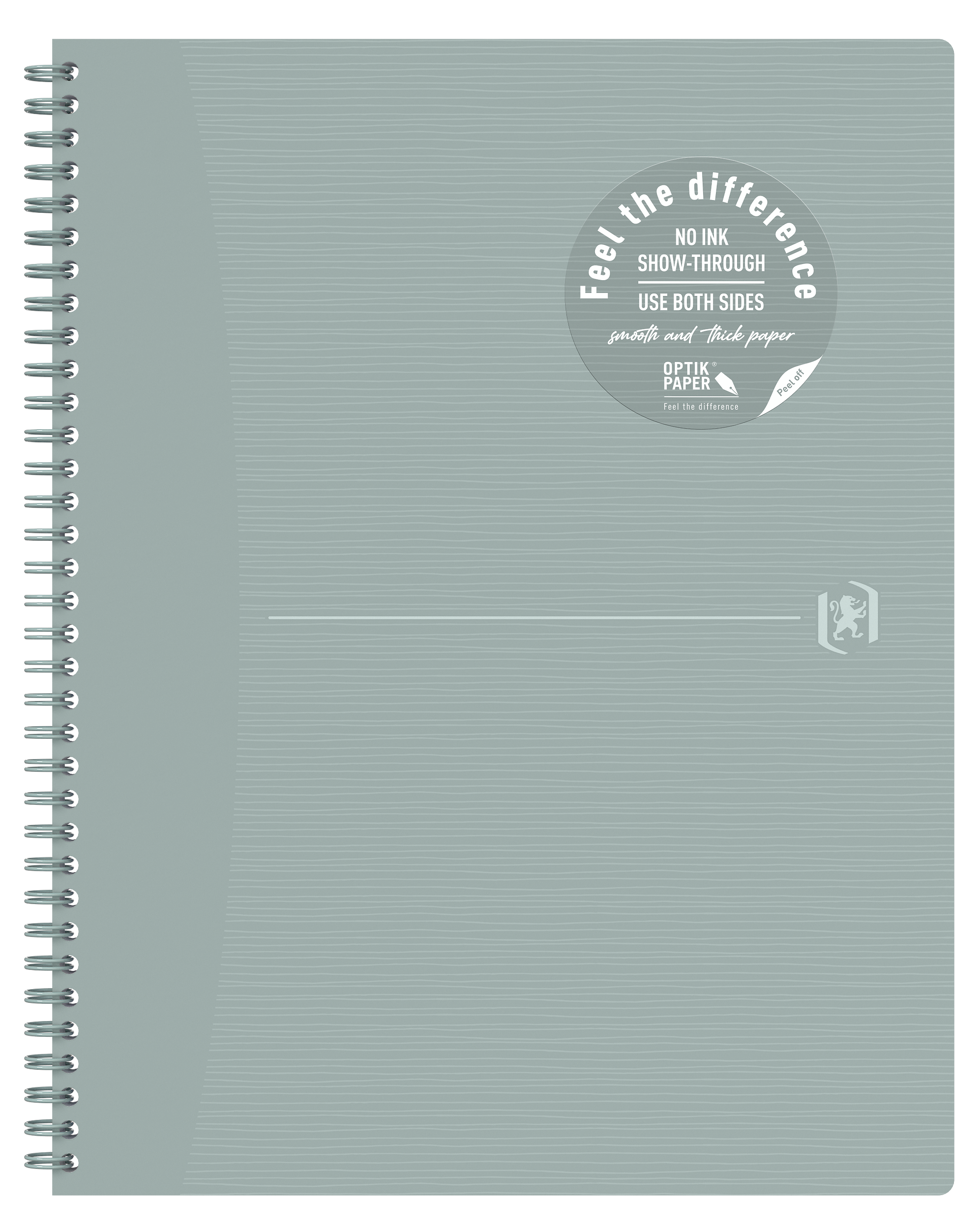 A4+ notesbog, 5 mm tern, forperforerede, aftagelige ark, 140 sider. Tykt og glat 90 g OPTIK PAPER®, så du kan skrive på begge sider af arket eller overstrege noter, uden at blækket kan skinne igennem. Med den matchende grå dobbeltrådsbinding kan notesbogen ligge fladt eller foldes tilbage om sig selv for maksimal komfort og fleksibilitet. Blødt kartonomslag med beskyttende mat finish. Fås i 5 forskellige farver, inspireret af naturen. Kompatibel med den gratis Scribzee® smartphone-applikation, der kan bruges til at scanne, gemme, organisere og søge i dine håndskrevne noter. OXFORD Origins-serien har fået EU’s miljømærke. Den trykte indstiksside indeholder et skriveområde, hvor du kan gøre din notesbog personlig med dit navn og dine kontaktoplysninger.