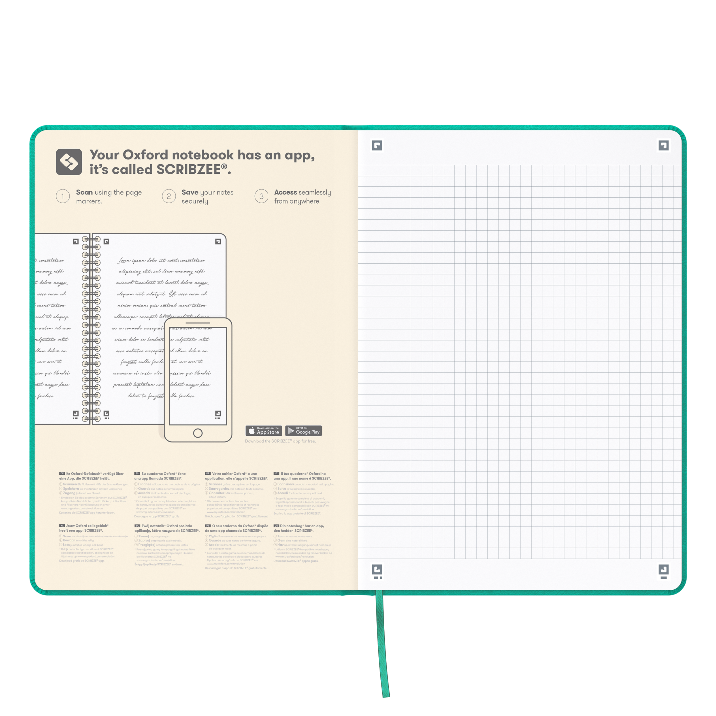 OXFORD Signature A5-Journal-notesbog, indbundet med hårdt omslag, 5 mm kvadreret, 160 sider, turkis, SCRIBZEE®-kompatibel