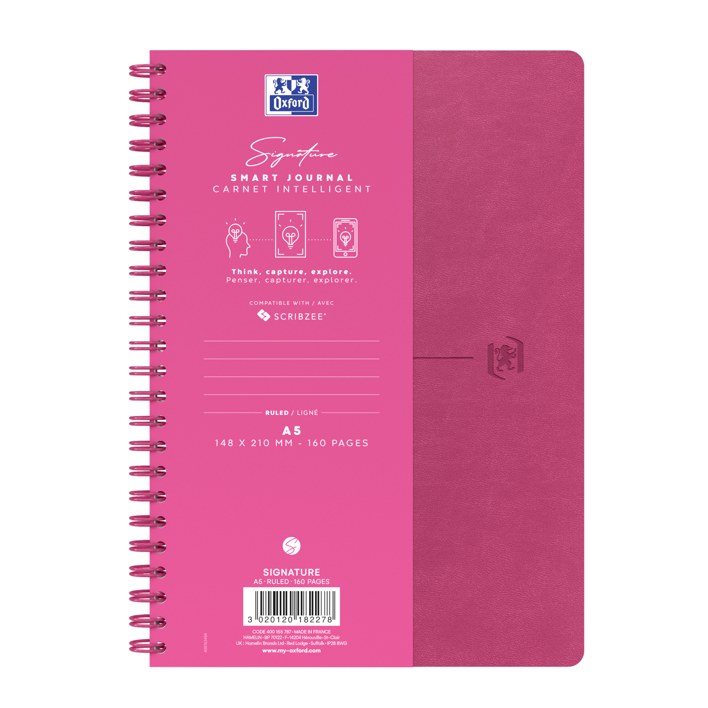 OXFORD Signature A5 Notesbog Fleksibelt omslag Dobbeltspiral Linjeret 160 sider Fuchsia SCRIBZEE-kompatibel