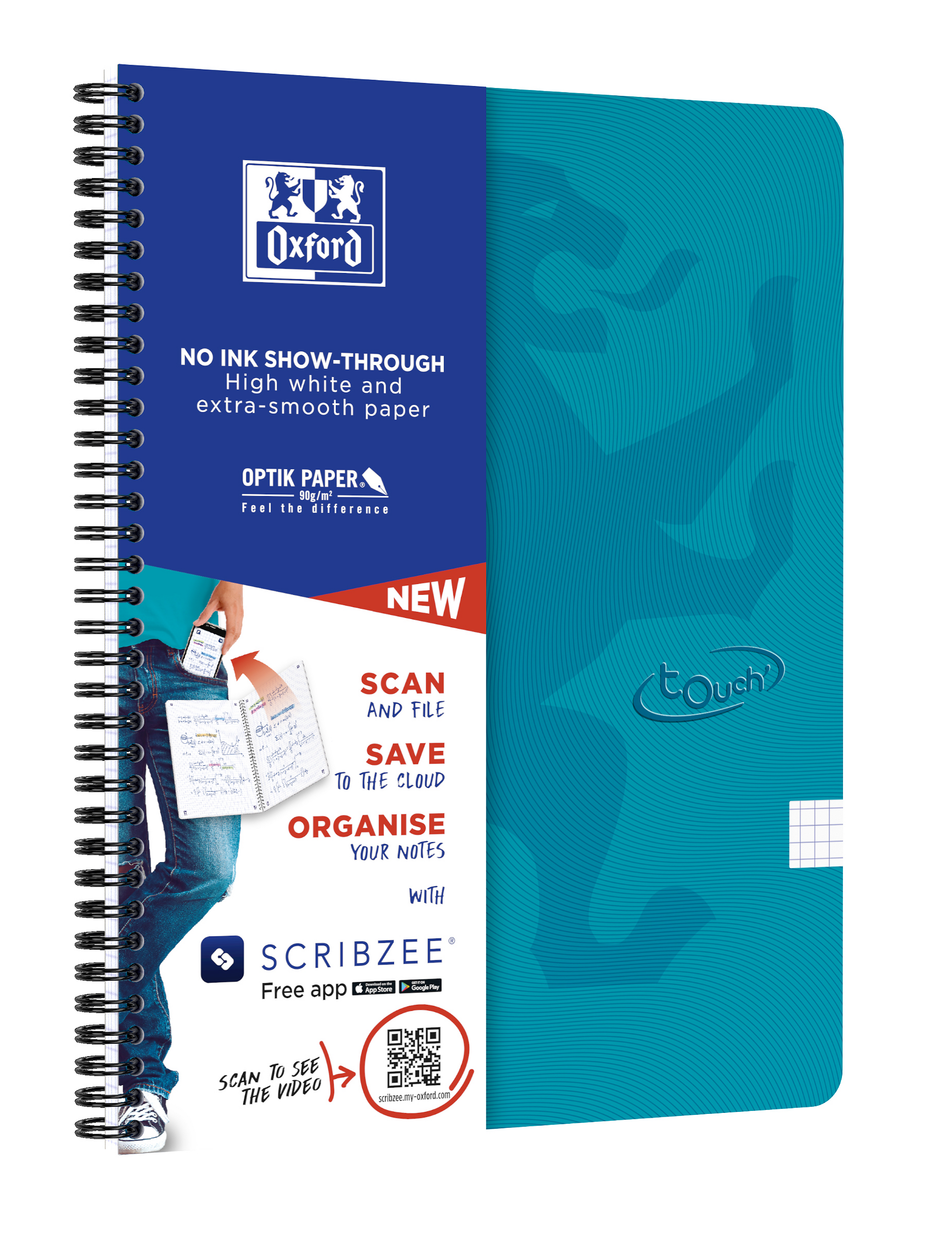 Kraftig dobbelt-spiral. Afrundede hjørner. SCRIBZEE tags – scan, gem og del dine noter.
