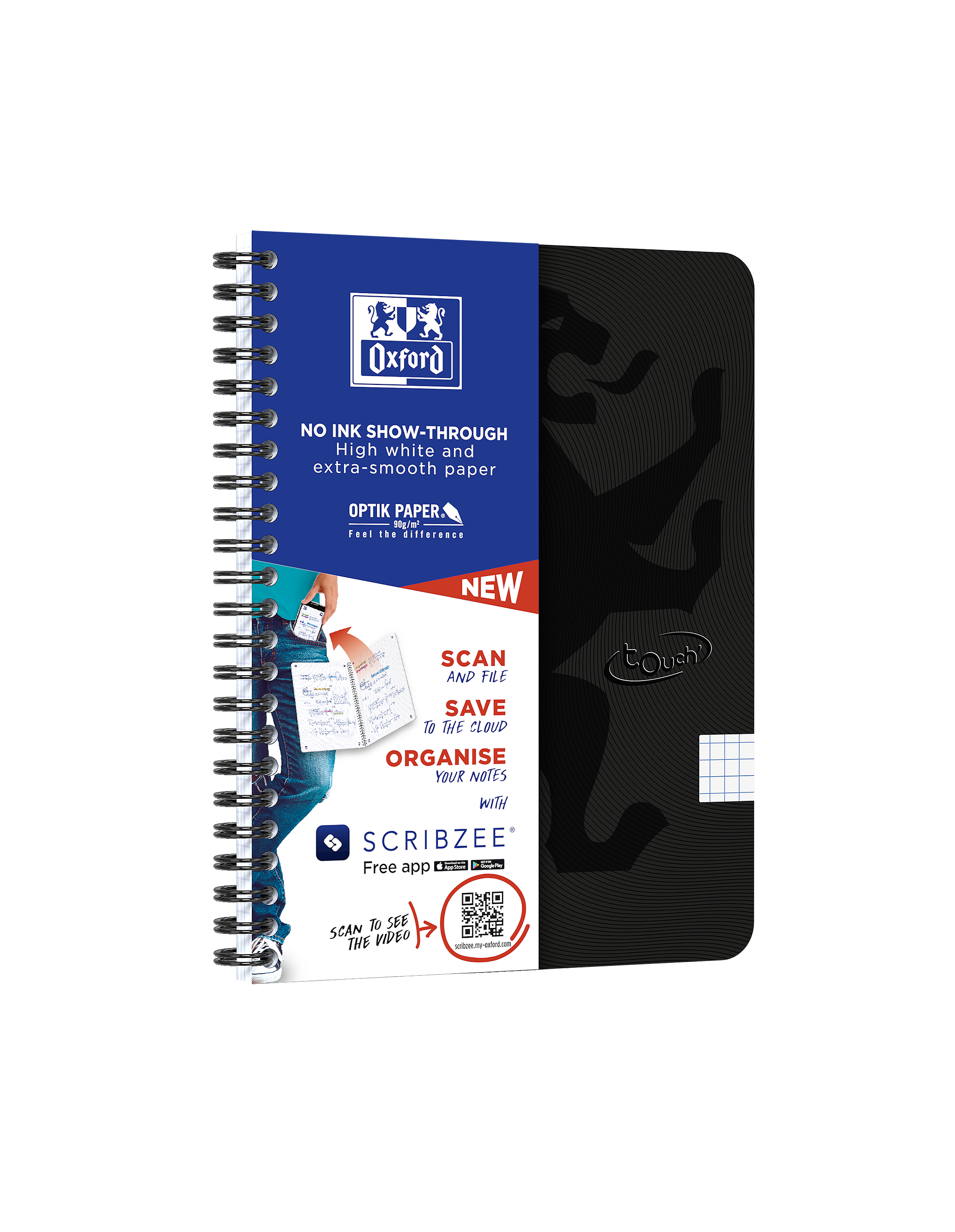 Kraftig dobbelt-spiral. Afrundede hjørner. SCRIBZEE tags – scan, gem og del dine noter.