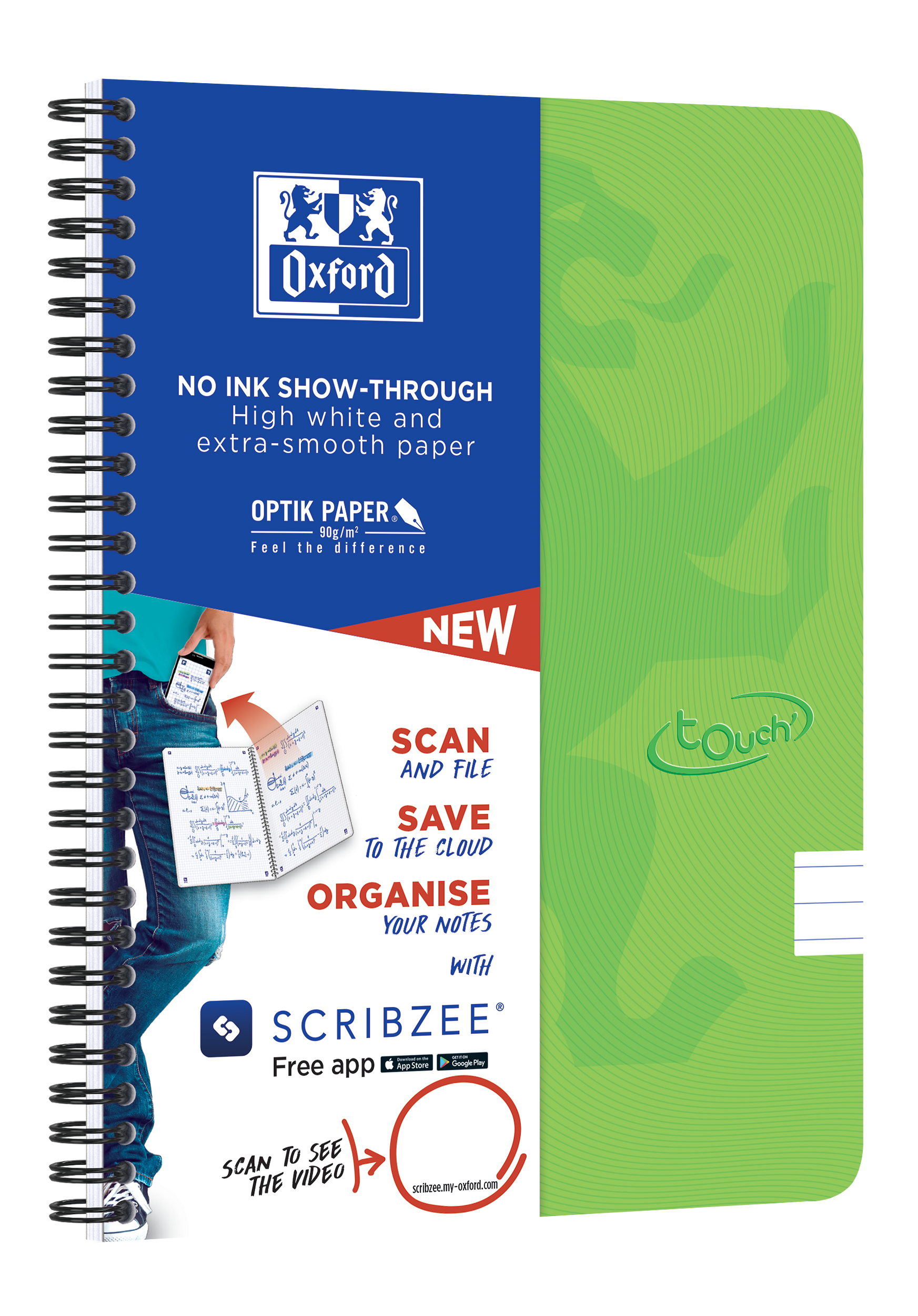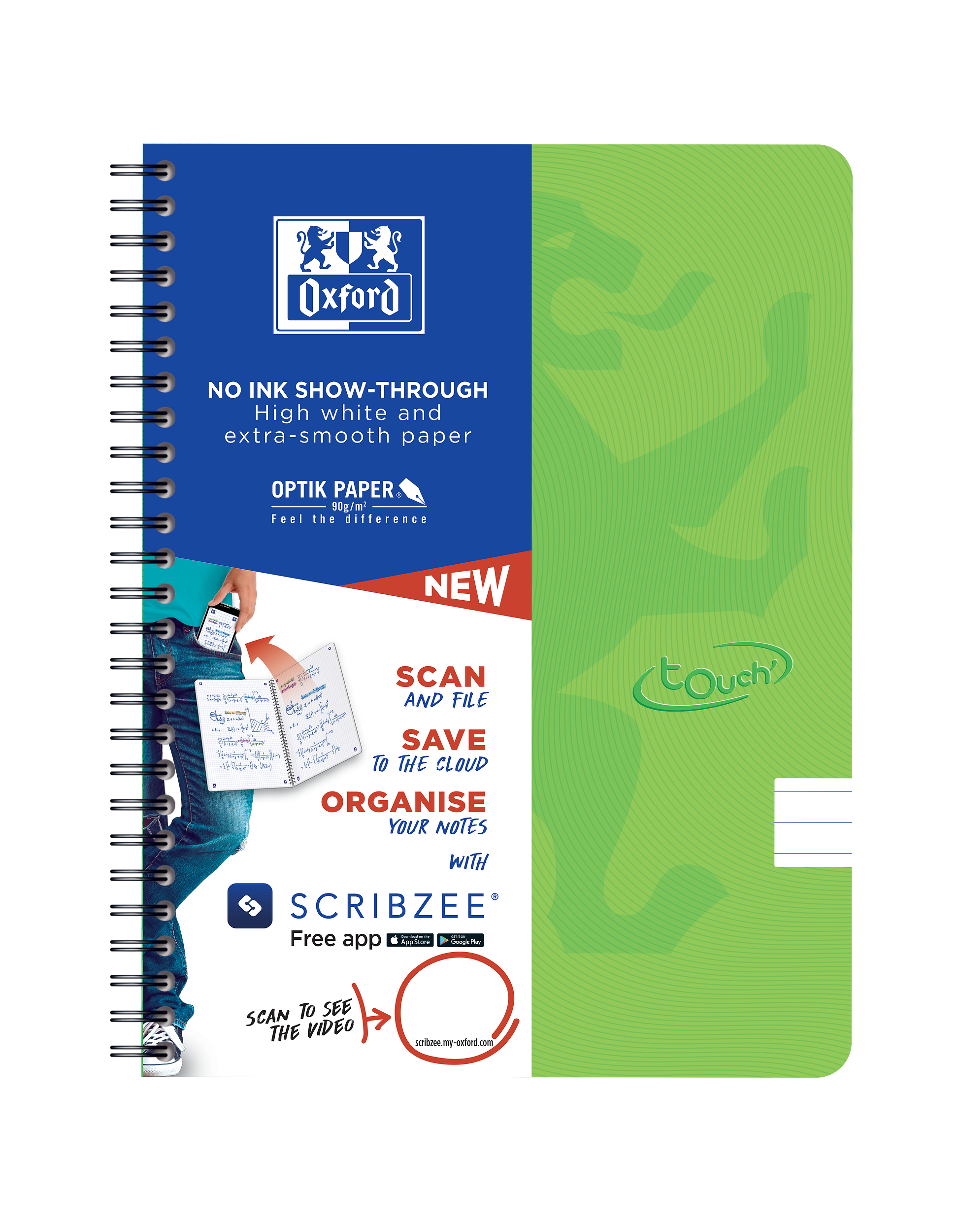 Kraftig dobbelt-spiral. Afrundede hjørner. SCRIBZEE tags – scan, gem og del dine noter.