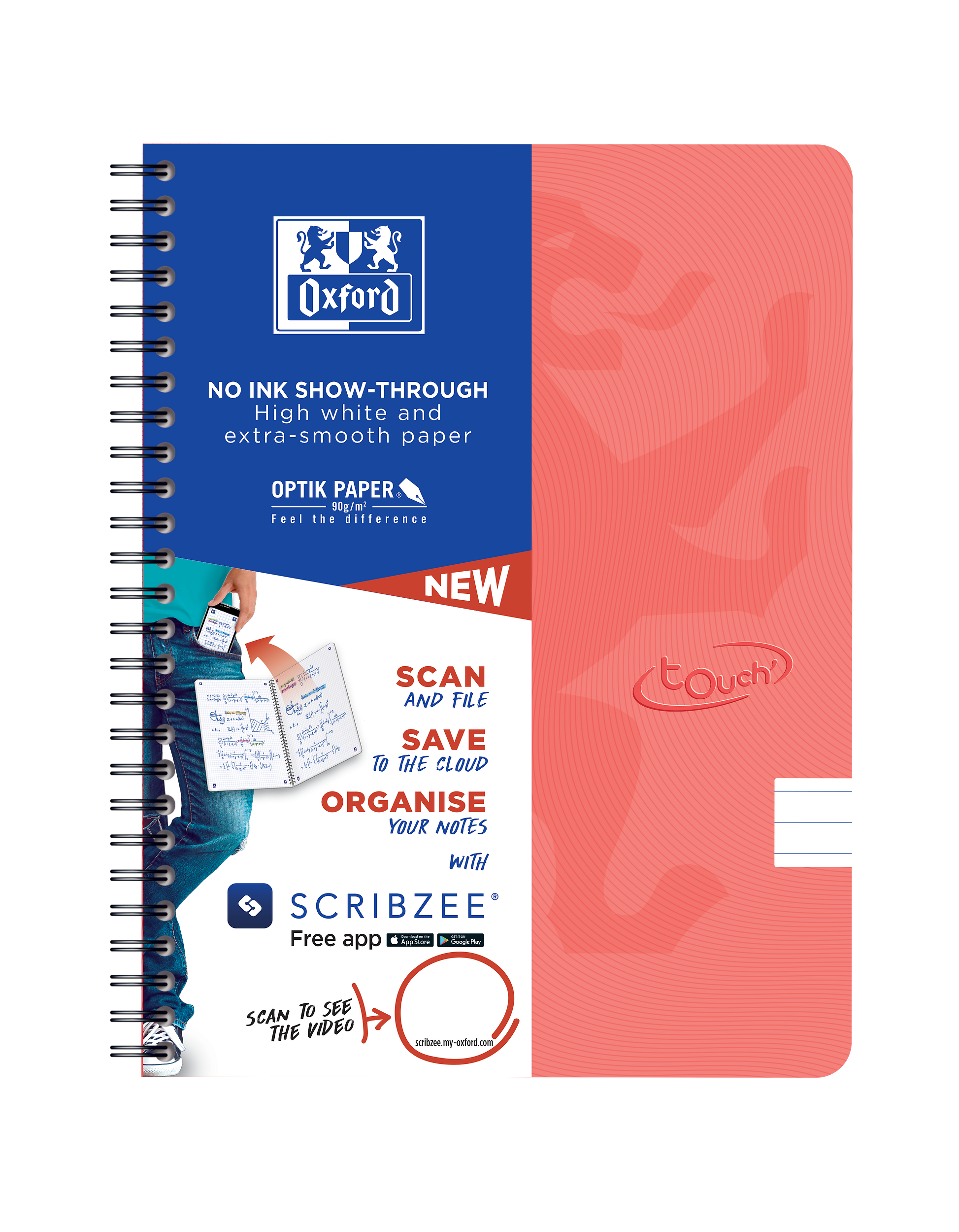 Kraftig dobbelt-spiral. Afrundede hjørner. SCRIBZEE tags – scan, gem og del dine noter.