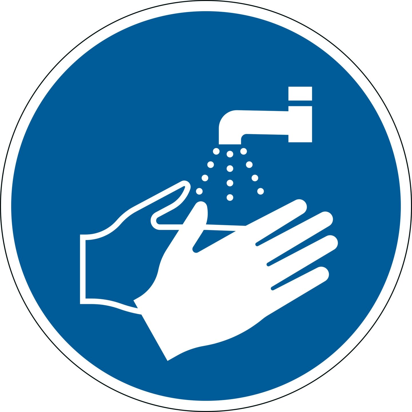 Påbudsskilt “Vask hænder” Ø43 cm aftagelig