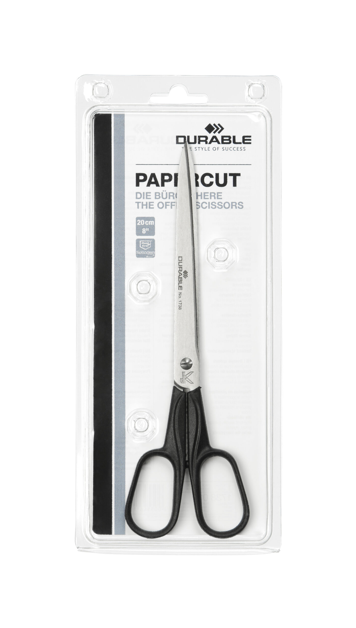 Kontorsaks til alsidigt kontorarbejde :papir, karton, plast, tejp, stof og andre materialer. Hærdet, rustfrit kvalitetstål fra Solingen, Tyskland. Justerbar skrue for et godt snit.
