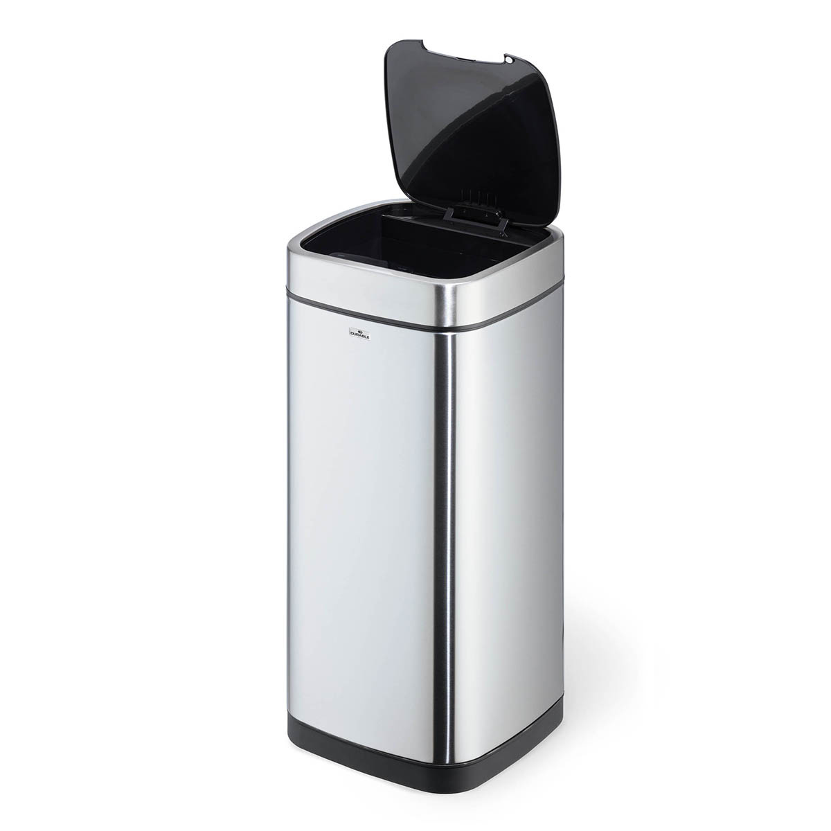 NO TOUCH er en praktisk og hygiejnisk affaldsspand med indbygget sensor, der automatisk åbner låget når du fører hånden over spanden. Låget lukker automatisk igen efter 5 sekunder. På den måde kan du undgå spredning af bakterier og vira, samtidig med at du undgår lugtgener fra affaldet.