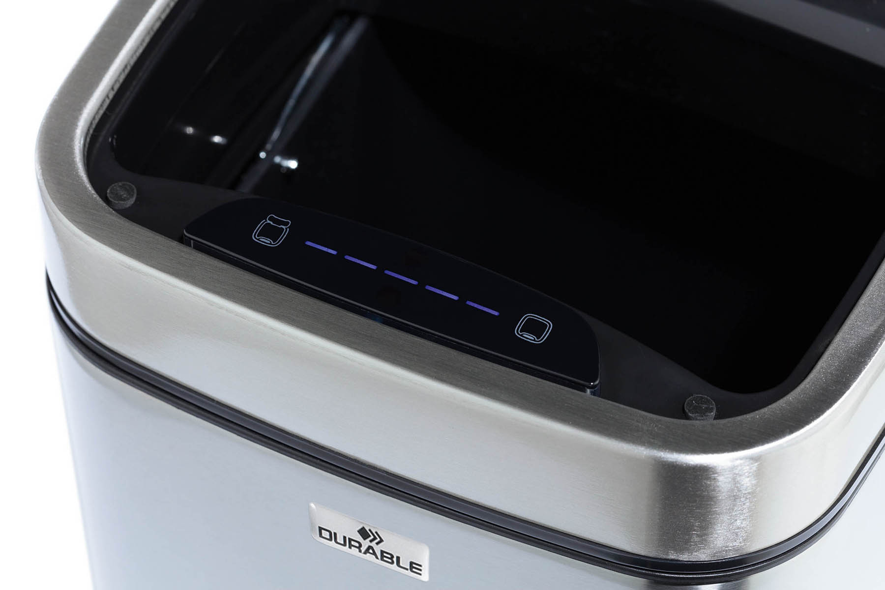 - Åbner via bevægelsessensor og lukker automatisk, alternativt manuel betjening via OPEN / CLOSE knappen