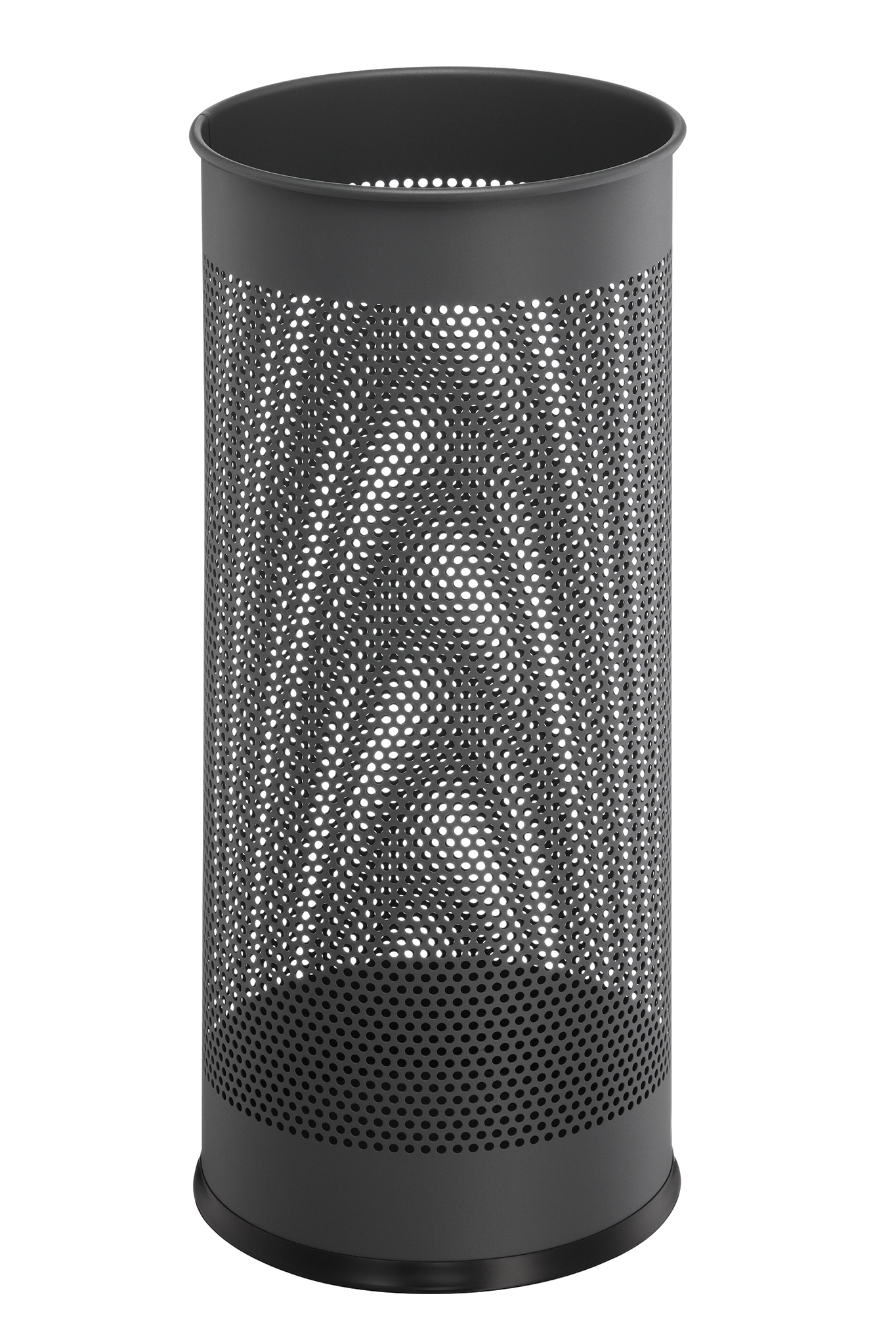 Stilig, dekorationshullet metalparaplyholder med ridsefast polyesterbelægning. Ideel til f.eks. indgange på arbejdspladsen, i hjemmet, hoteller eller restauranter. Kan også anvendes som papirkurv. Kapacitet 28,5 liter Mål: HxØ 620x260mm