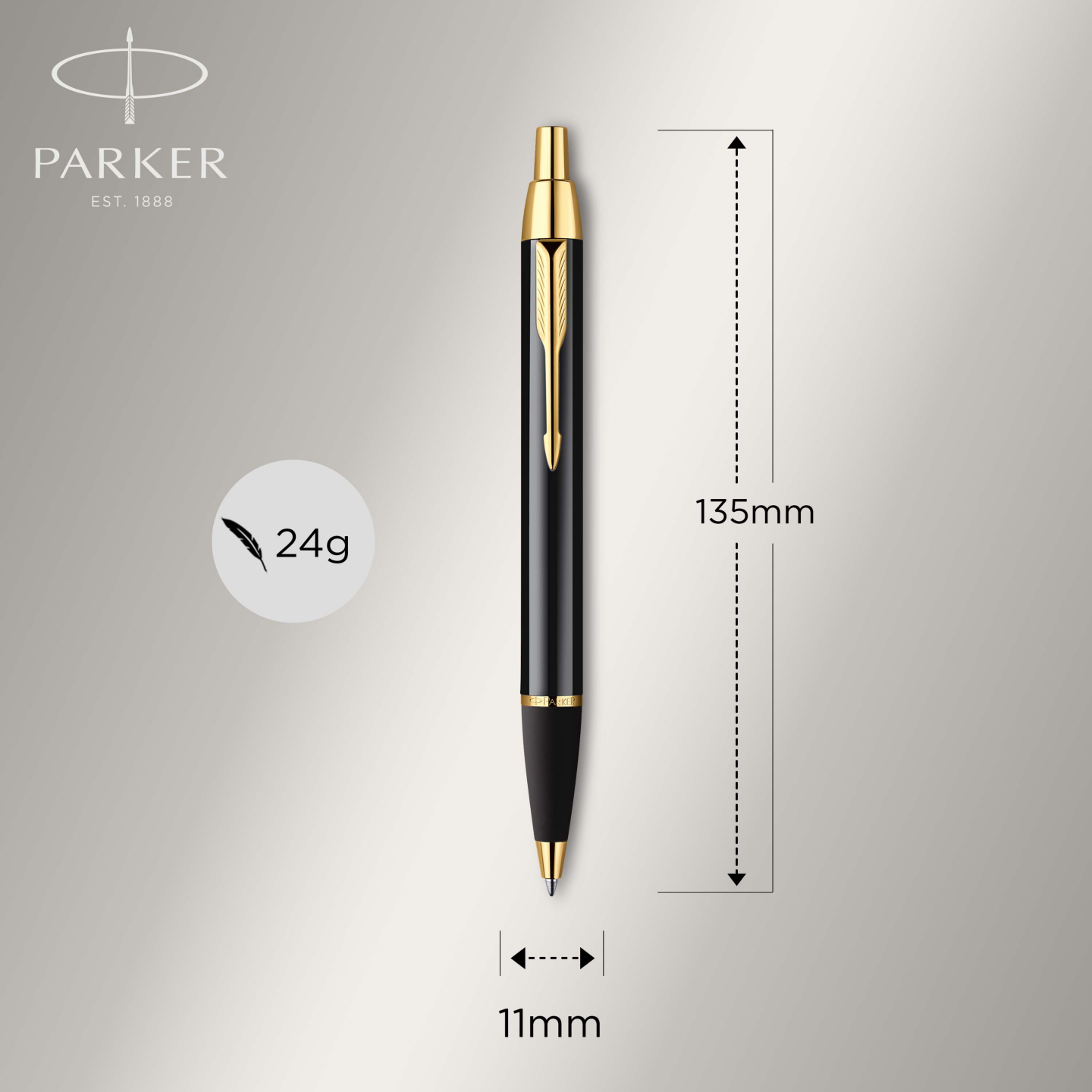 At once smart, polished and professional, yet comfortable enough for daily use thanks to its ergonomic shape, Parker IM pens have a leek, tapered look that pairs seamlessly with innovative designs to make a striking statement. Crafted with brushed metal and accented with a striking golden trim, this Parker pen set makes a memorable gift for professionals looking to make their mark, as well as those who appreciate the slow art of expressing ideas on paper. Box Contains: 1 x IM Ballpoint Pen; 1 x IM Rollerball Pen; 1 x black Quinkflow refill; 1 x black Quink cartridge.
