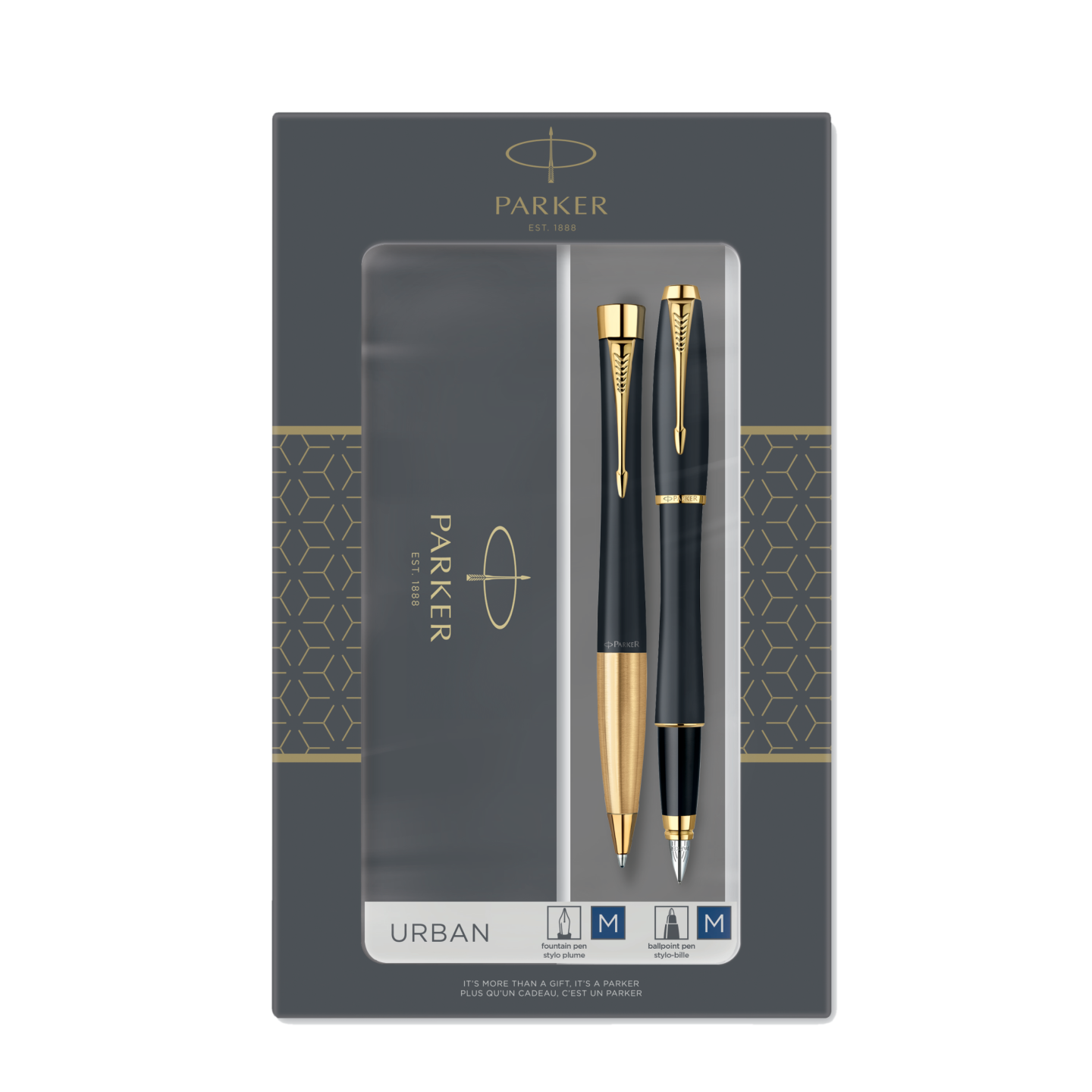 Parker Duo Set Urban Black G.T. Ballpoint and Fountain Pen M Blue ink