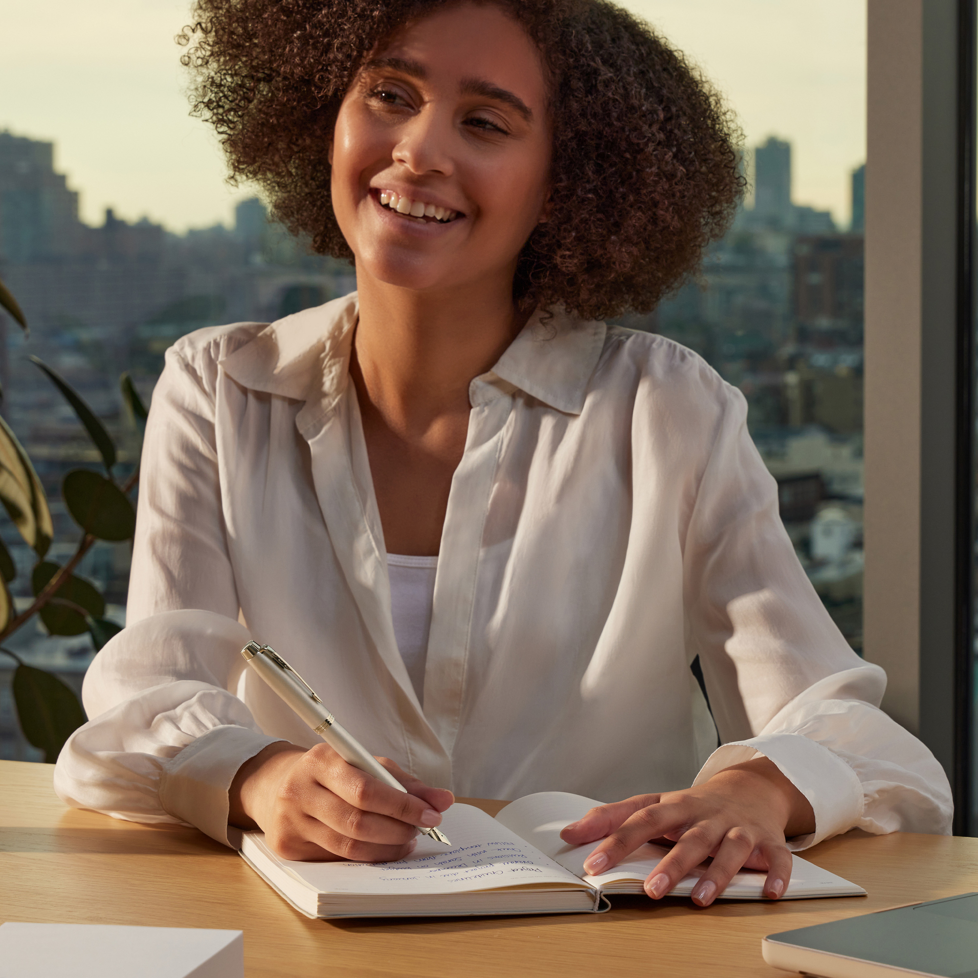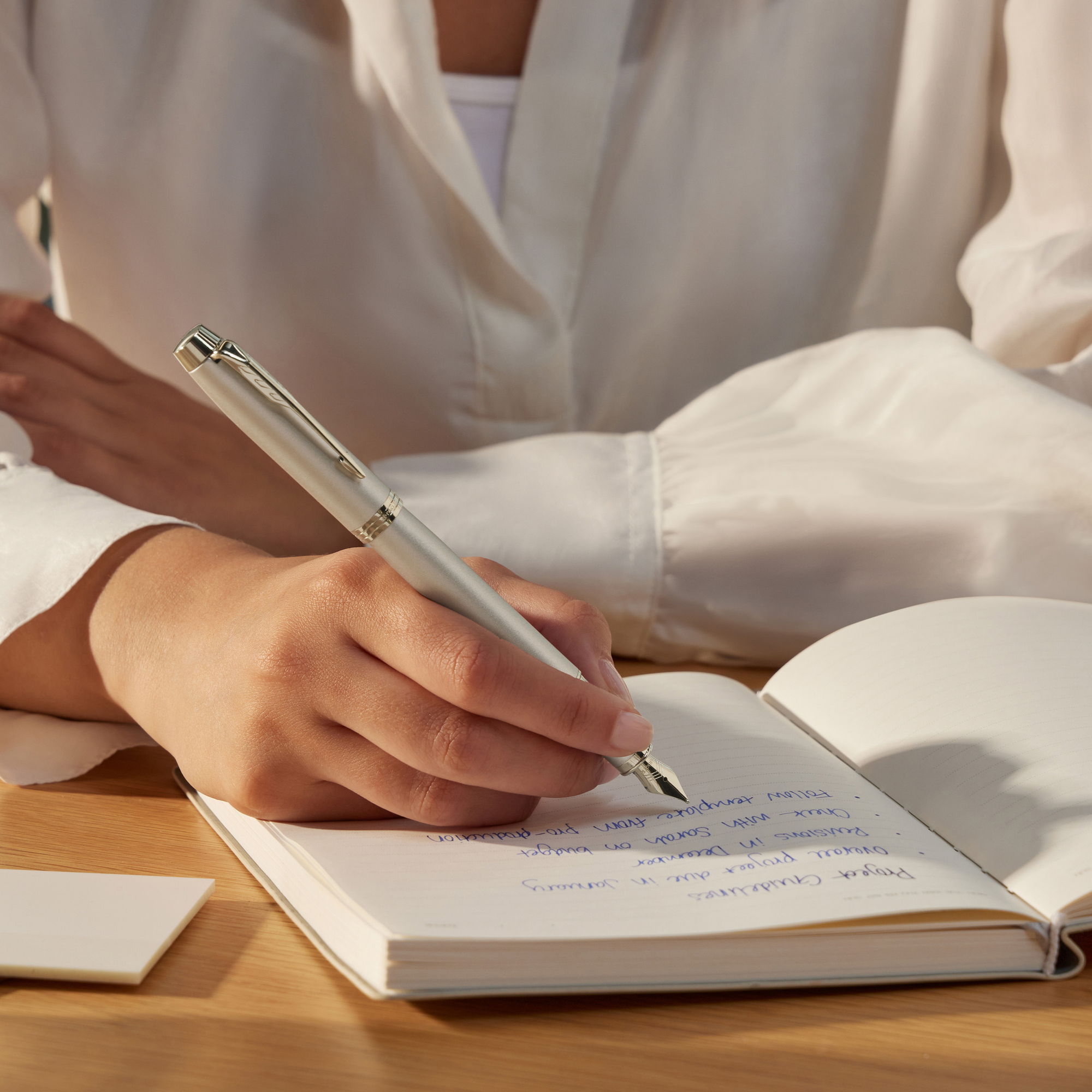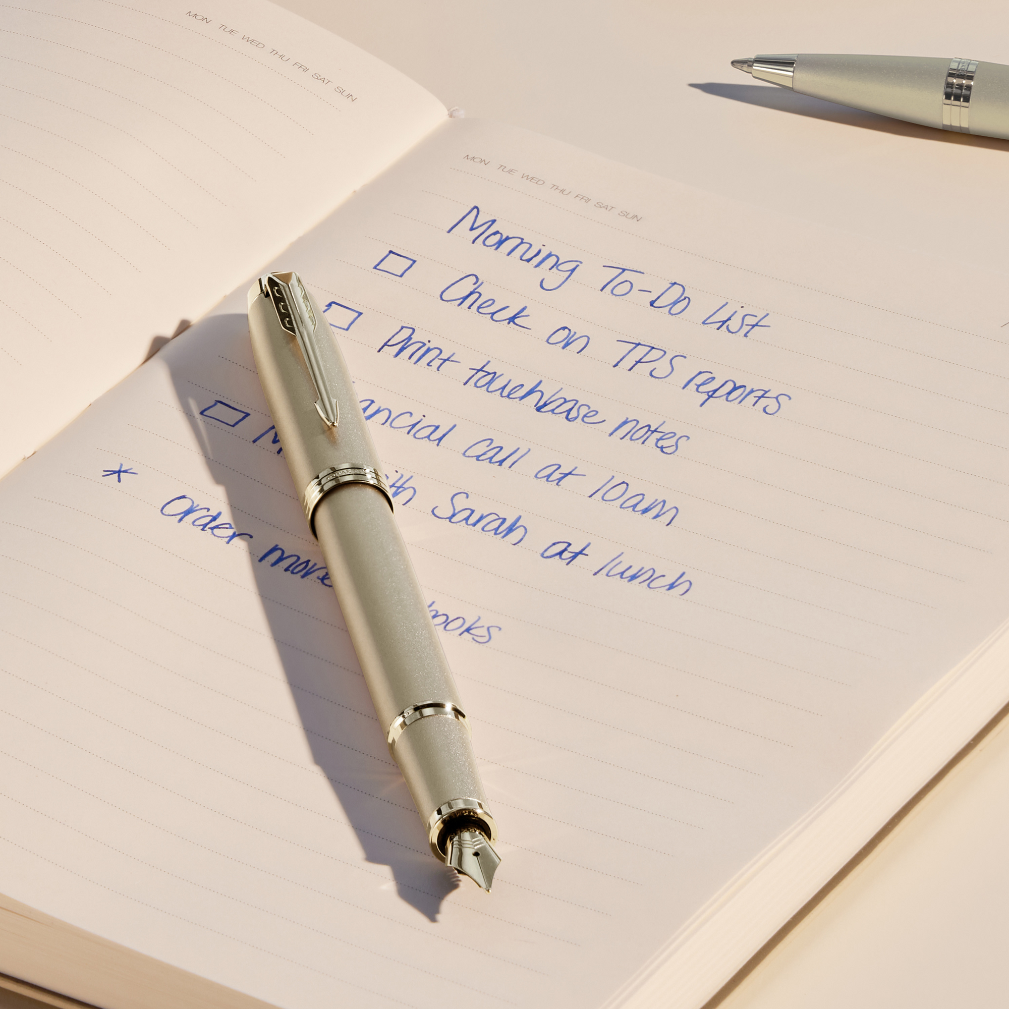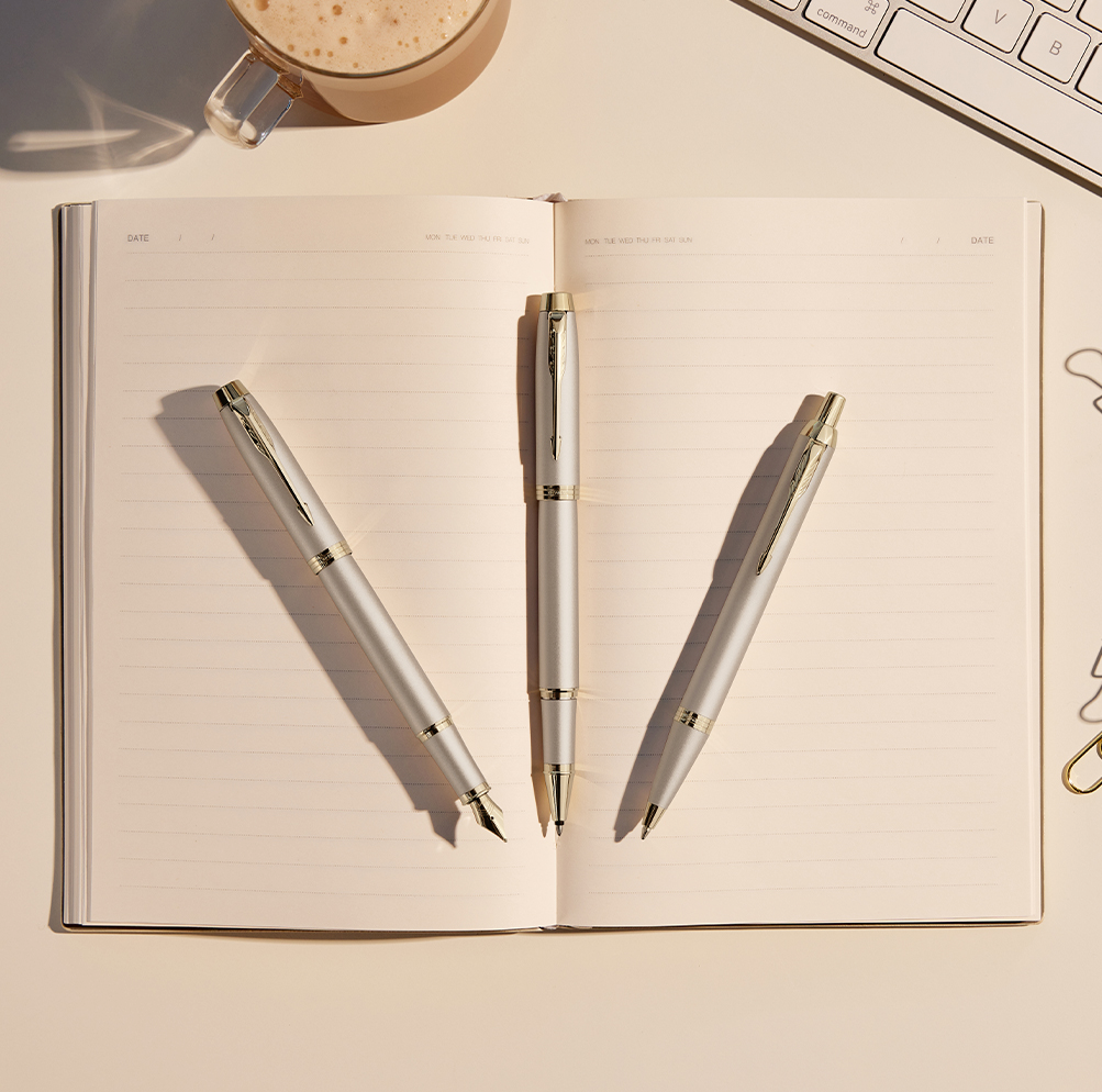 Designed with the modern professional in mind, the functional, smart, and polished Parker IM fountain pen is sure to stand out in any workplace. Making no compromises, Parker IM Monochrome pens feature a full metal body that looks and feels luxurious in your hands. Meanwhile, the monochromatic design, from the champagne trims to the champagne nib, portrays unmatched elegance. With over a century of in-house craftsmanship and expertise, this Parker pen features exclusive metal parts adorned with PVD coating that offers superior wear and corrosion resistance -as well as a distinctive look. The modern fountain pen uses Quink ink cartridges or converts to ink bottle filling, for an extra level of sophistication in your writing. And with an elegant Parker gift box, the Parker IM Monochrome pen makes for memorable gifting.