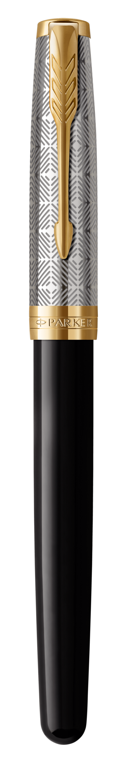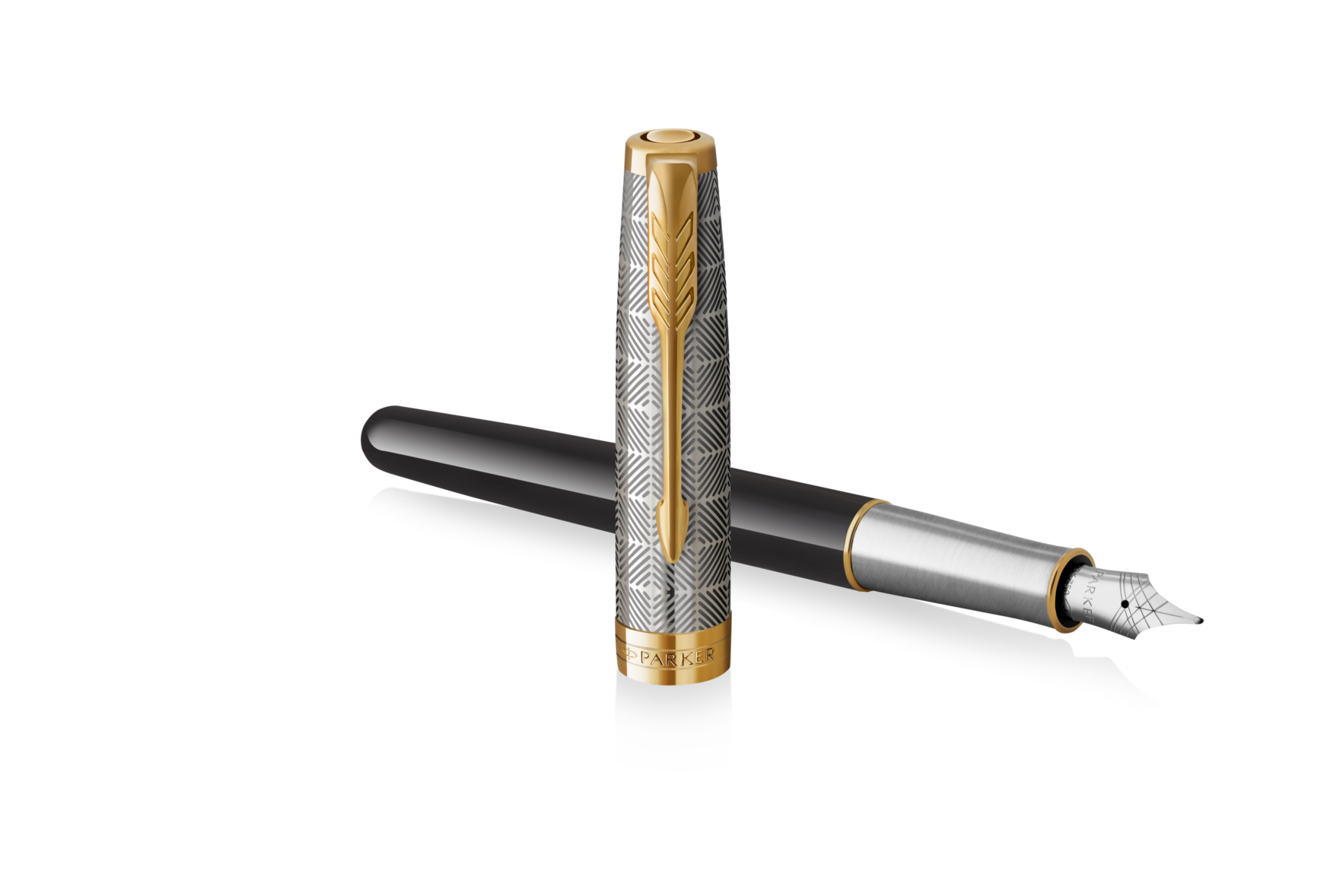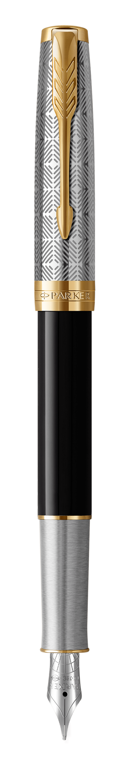 Parker Sonnet Premium Metal and Black Gloss Finish G.T. Fountain Pen F 18K Gold nib Black ink