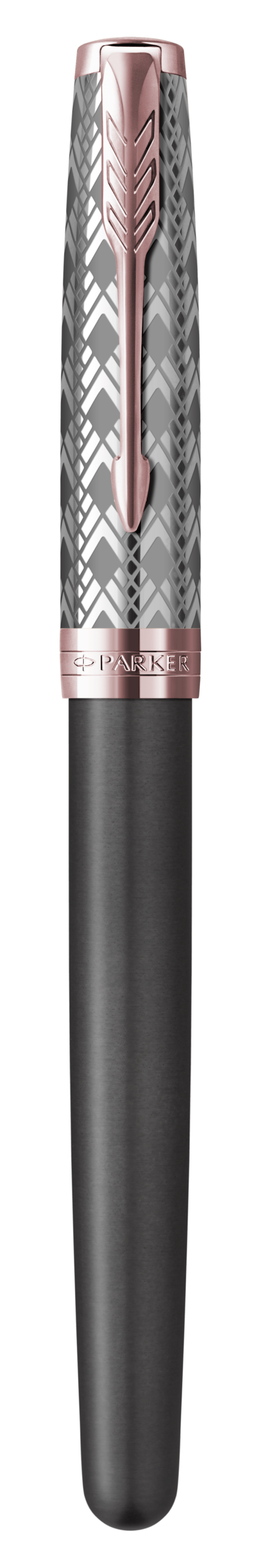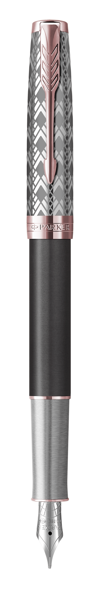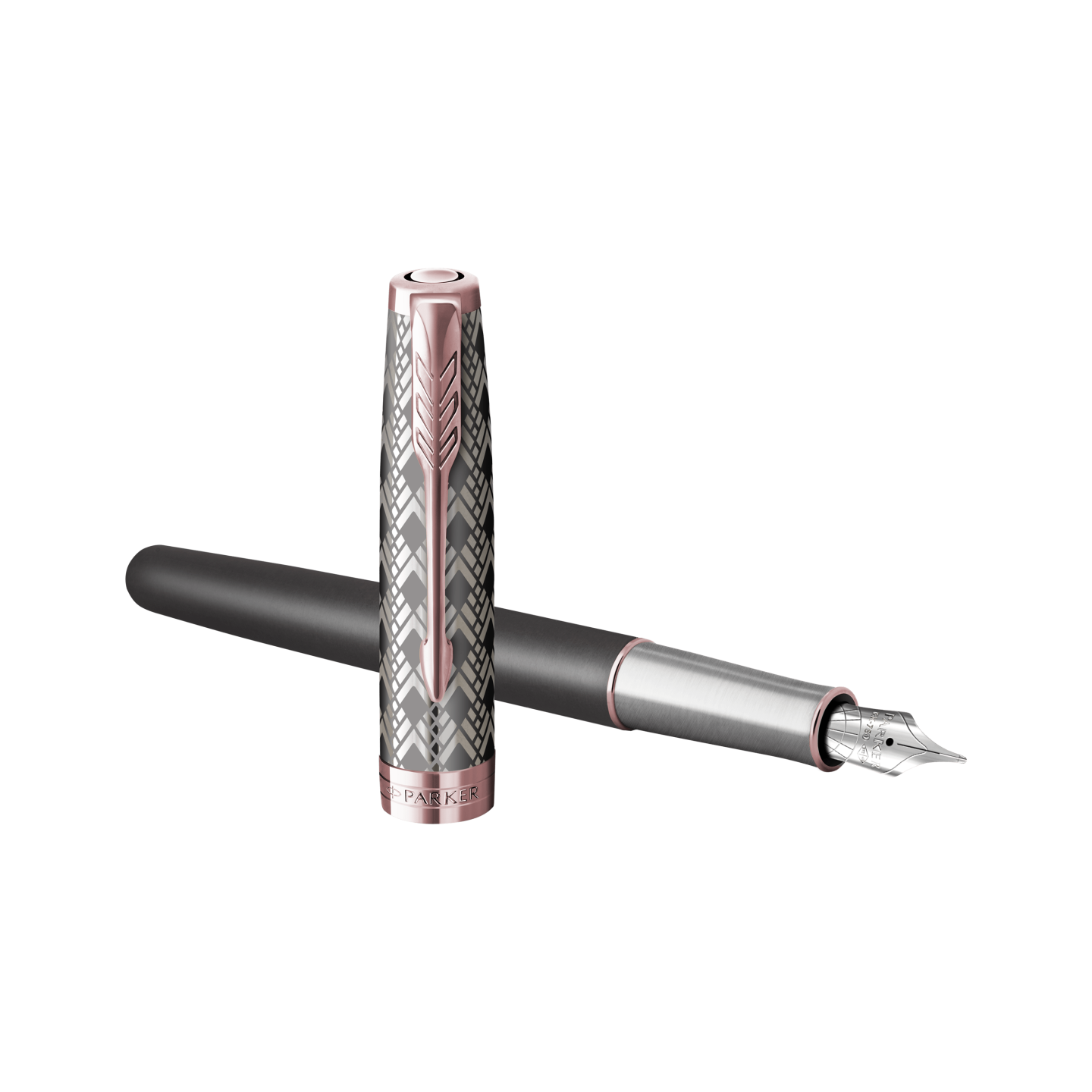 Parker Sonnet Premium Metal and Grey Satin Finish Rose G.T. Fountain Pen F 18K Gold nib Black ink