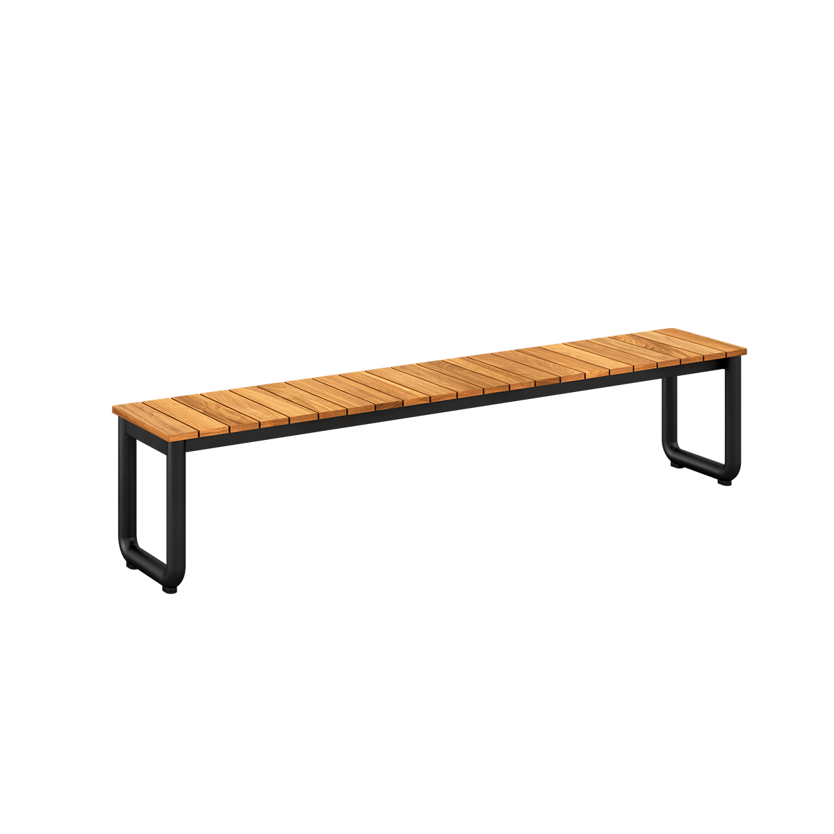Patio Bench er en udendørs bænk i et elegant design. Bænken er lavet i flotte og modstandsdygtige materialer pulverlakeret rustfrit aluminium og massivt teaktræ.