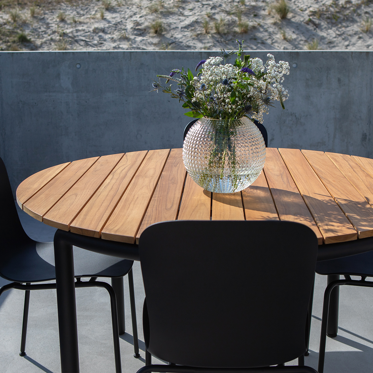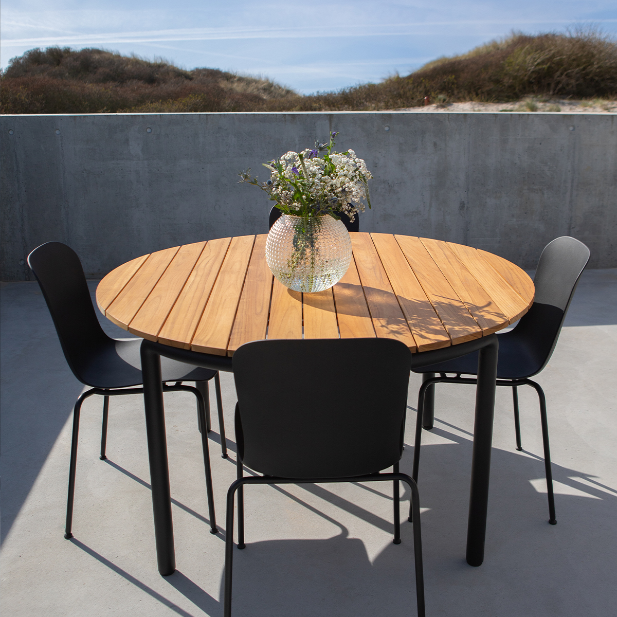 Patio-spisebordet finder sin særlige karakter gennem de rolige detaljer og et enkelt udtryk, som gør det muligt for bordet at komplimentere ethvert udendørs miljø.