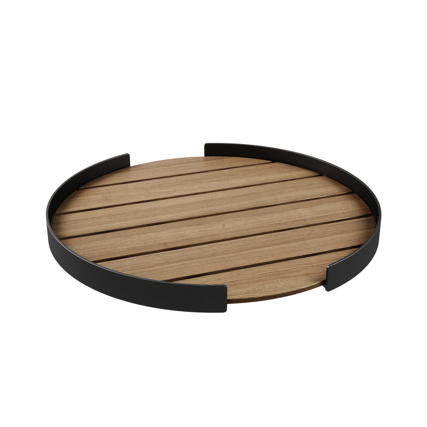 Patio Serving Tray er lavet med en pulverlakeret aluminiumsramme, som gør bakken til et lækkert og holdbart udendørsmøbel. Bakken er sammensat af flere stykker træ, som gør den ideel til udendørs brug, hvor eventuelt regn ikke vil samle sig på bakken.