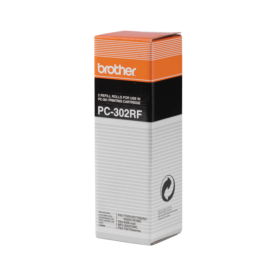 Brother PC-302RF. Side kapacitet: 235 Sider, Udskrivning af farver: Sort, Kapabilitet: Brother FAX-910, FAX-917, FAX-920, FAX-930, FAX-940. Bredde: 66 mm, Dybde: 70 mm, Højde: 230 mm. Pakkevægt: 544 g, Pakketype: Kasse. Produkter pr. palle: 864 stk, Pallens bruttohøjde: 17,2 cm, Pallens bruttovægt: 562,3 kg. Oprindelsesland: Japan