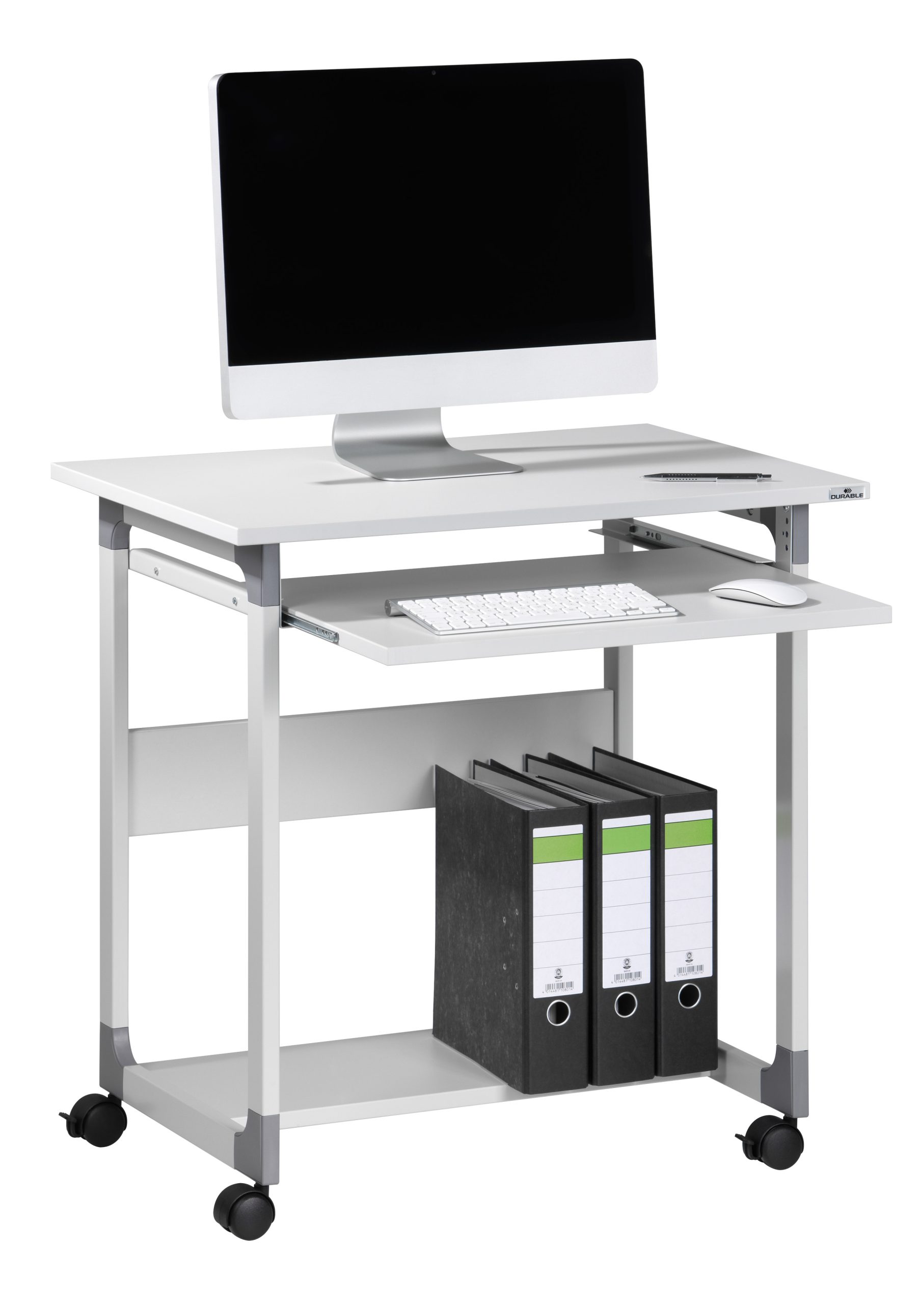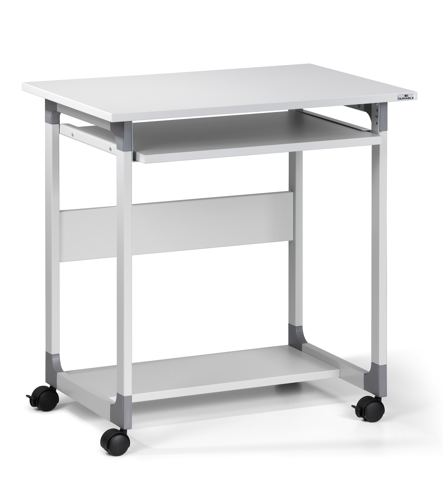 • Fleksible arbejdsstation med udtræk til tastatur • Indstillelig højde fra 550 til 630 mm • Mobil og sikker håndtering (4 ruller, 2 af dem med bremse) • To slidstærke plader (19 mm), ideel til placering af skærm, printer, brevordnere osv. • Enkel montering vha. den medfølgende vejledning • Stabil ramme af ridsefast stål med glasfiberforstærkede plasthjørner