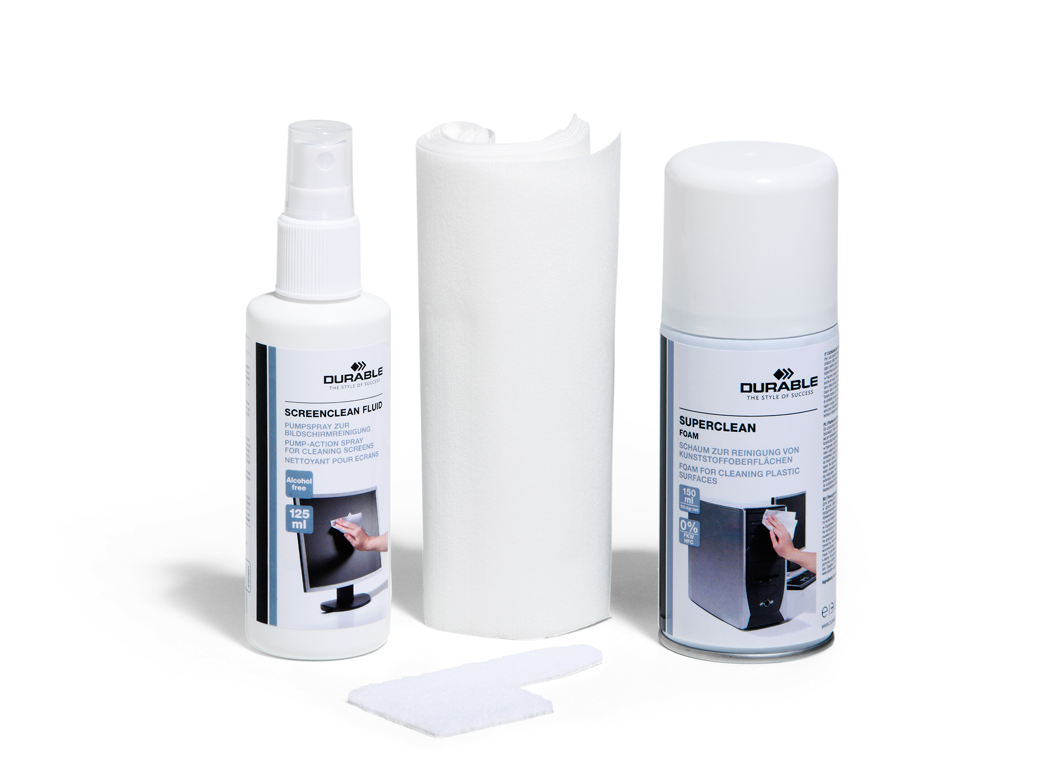 Pc cleaning kitSæt med alt hvad du behøver for at holde din arbejdsplads ren. SUPERCLEAN renseskum 150ml, SCREENCLEAN rensespray 125ml 10 klude og 1 tastatur rens.