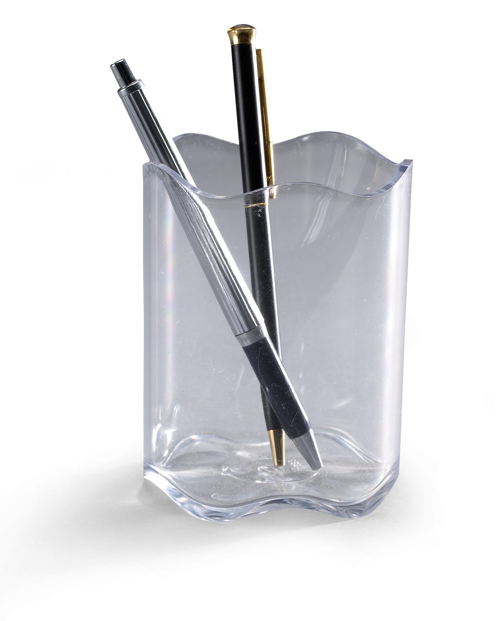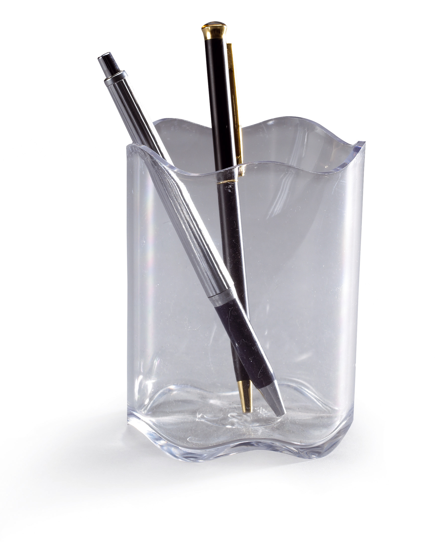 Rund penneholder med bølget kant til opbevaring af penne, sakse osv. Mål: ø 80mm. Højde 102mm.